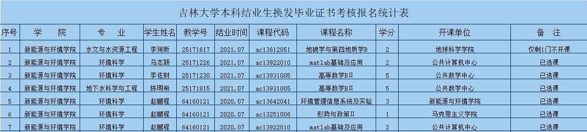 现将2021-2022-1学期结业生换发毕业证书考核报名情况进行公示通知(见下表),表内为审核通过人员信息,请相关同学及时参加本学期的考试。