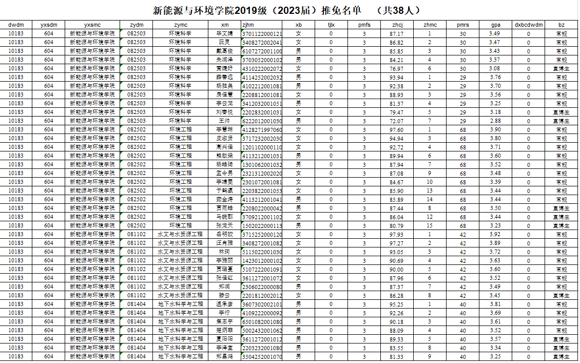 按学校和学院推免政策规定,结合各专业指标分配方案,现将2019级(2023届)应届本科毕业生免试攻读研究生名单进行公示,本次获推荐资格者共38人,不符合推荐资格的8人列为备选。