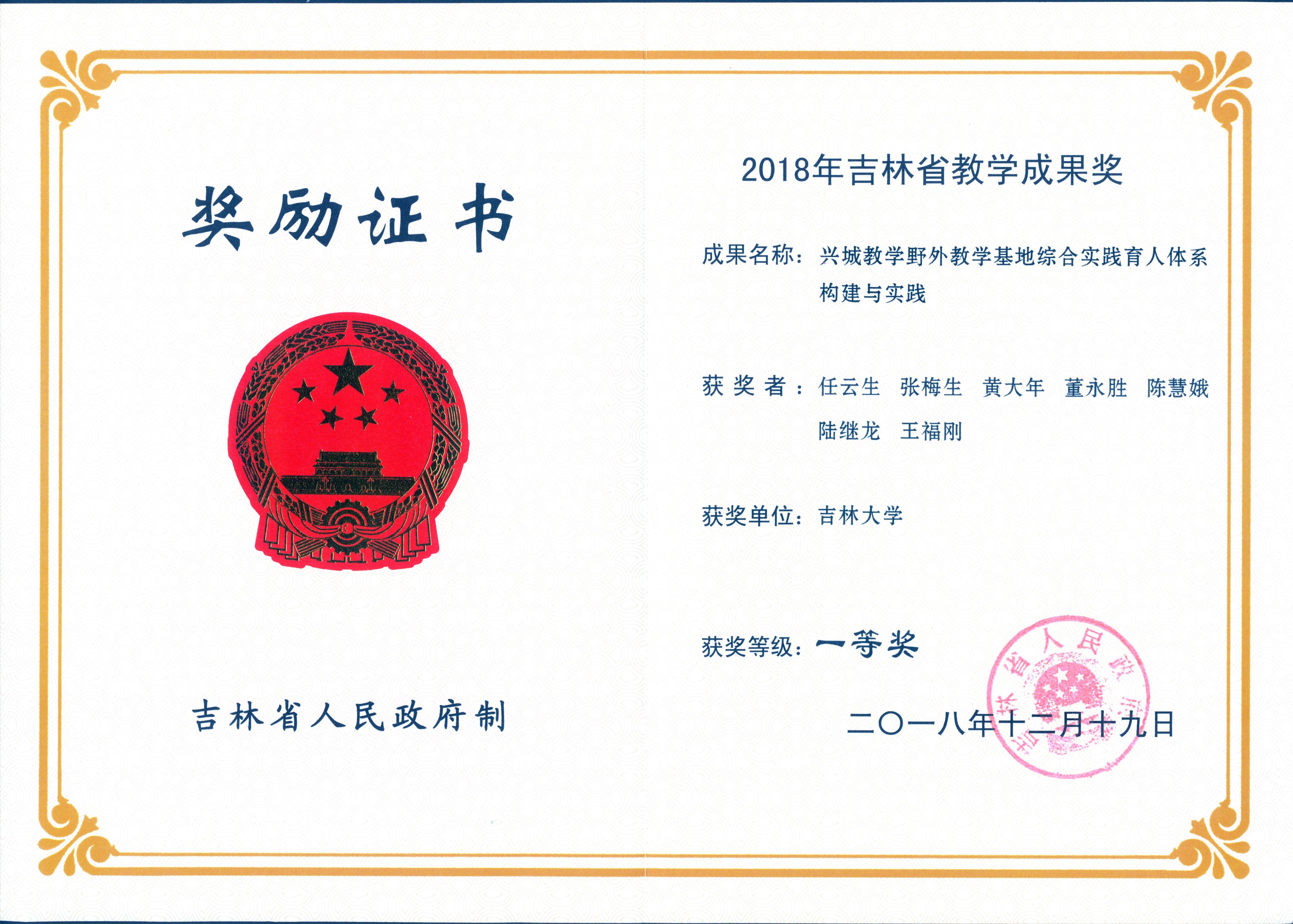 获得奖项:2018年吉林省教学成果一等奖
