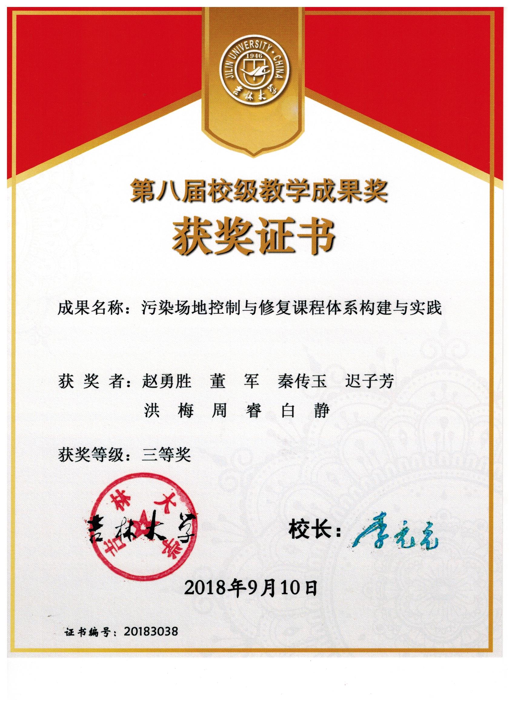获奖人员:肖长来、赵勇胜、王宪恩、梁秀娟、邹东雷、方  樟、张  博