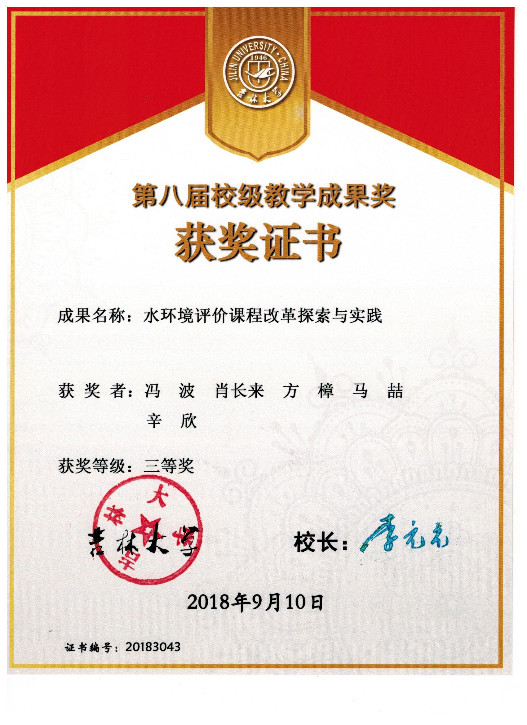 获奖人员:冯  波、肖长来、方  樟、马  喆、辛  欣