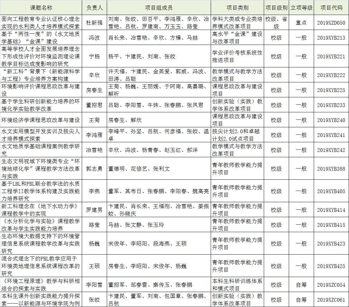 2019年教学改革项目