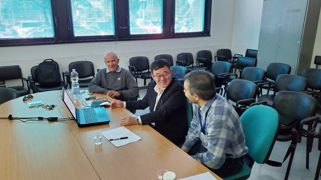 图4 许天福教授与意大利科学院地质研究所(CNR-IGG)Fabrizio研究员和Stefano研究员洽谈未来科研合作