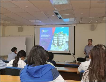 20191031日,代表团到南洋理工大学开展学习交流活动。首先,代表团去到了南洋理工大学地球科学学院(EOS),EOS的王显峰教授为学生们详细介绍了学院的基本情况和研究方向。他介绍说目前主要的自然灾害,如地震、海啸、火山喷发和全球气候变化给我们科技的飞速发展和人口的急剧增长带来了巨大的威胁。EOS目前的两大目标分别是:对一些复杂的自然现象进行深入的科学研究,并将其传递到深受影响的人口问题上。