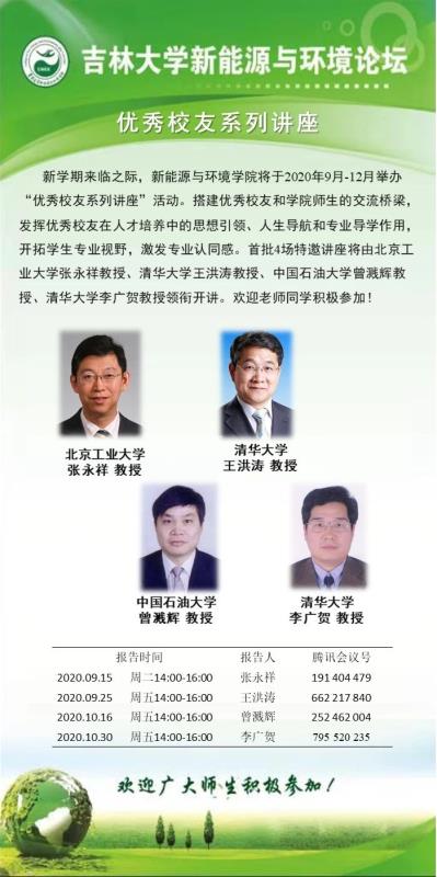 新学期来临之际,嗨皮漫画 将于2020年9月—12月举办“优秀校友系列讲座”活动。搭建优秀校友和学院师生的交流桥梁,发挥优秀校友在人才培养中的思想引领、人生导航和专业导学作用,开拓学生专业视野,激发专业认同感。首批4场特邀讲座将由北京工业大学张永祥教授、清华大学王洪涛教授、中国石油大学曾溅辉教授、清华大学李广贺教授领衔开讲。欢迎老师同学积极参加!