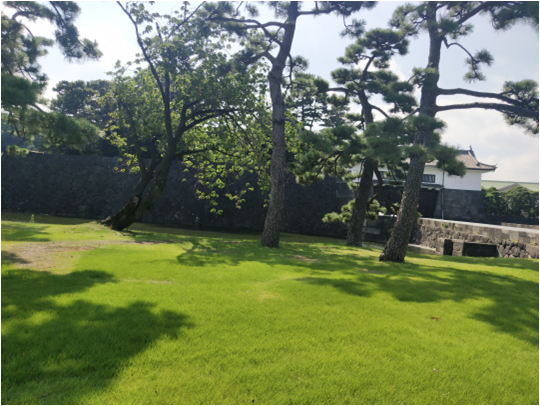 结束筑波大学的参访行程后,同学们来到了白墙黛瓦,宁静秀丽的皇居,在学习专业课知识的同时,更加深入地了解了日本的历史文化及民俗风情。江户幕府结束,明治天皇取回管治权后,明治由京都到江户居住,并易名为东京。江户城变成了天皇的居所。第二次世界大战期间,皇居曾受到美军的轰炸,至1968年依据原貌重建。一下车,映入眼帘的就是郁郁青青的树木,树木粗壮的枝干展示着他们已经上了年纪。走在路上,脚下一片踩起来沙沙作响的碎石子,据说是古代为了防止忍者夜袭而设计的。皇居前面就是警视厅,皇居之内都是天皇家的地方,平常人不得进入,如果有人进入了天皇家的地方,或者碰了天皇家的东西,警视厅可以直接由他们自己内部迅速定罪。由于皇居目前大部分都不开放,同学们便只在门口做了短暂的停留。