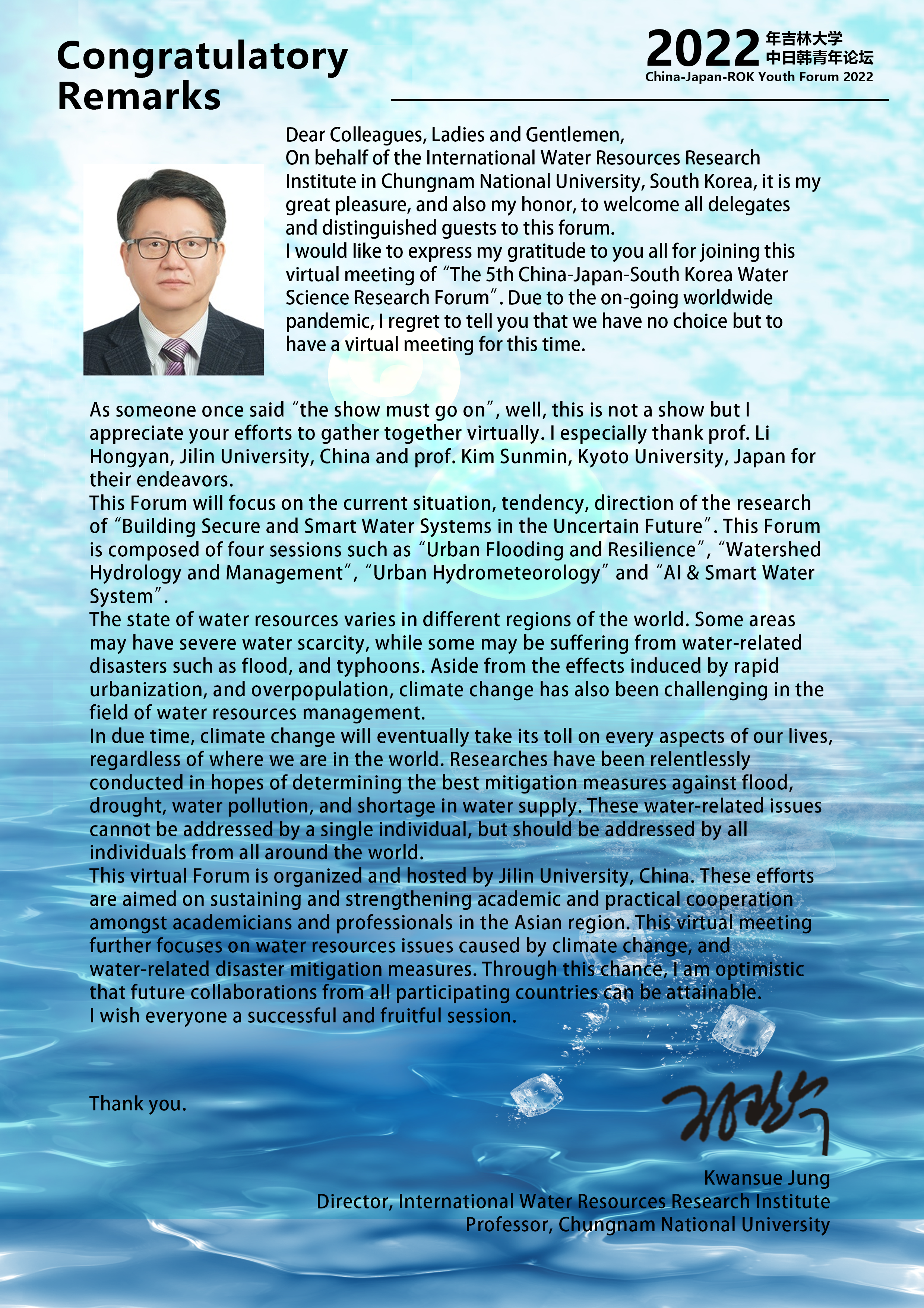 第五届中日韩水科学研究论坛与国际水协会出版社(International Water Association Publishing)开展合作,为本次会议创建在线文集,您可以在IWA Publishing的官网查看详情。//iwaponline.com/pages/cc_5th_cjsk_water_forum