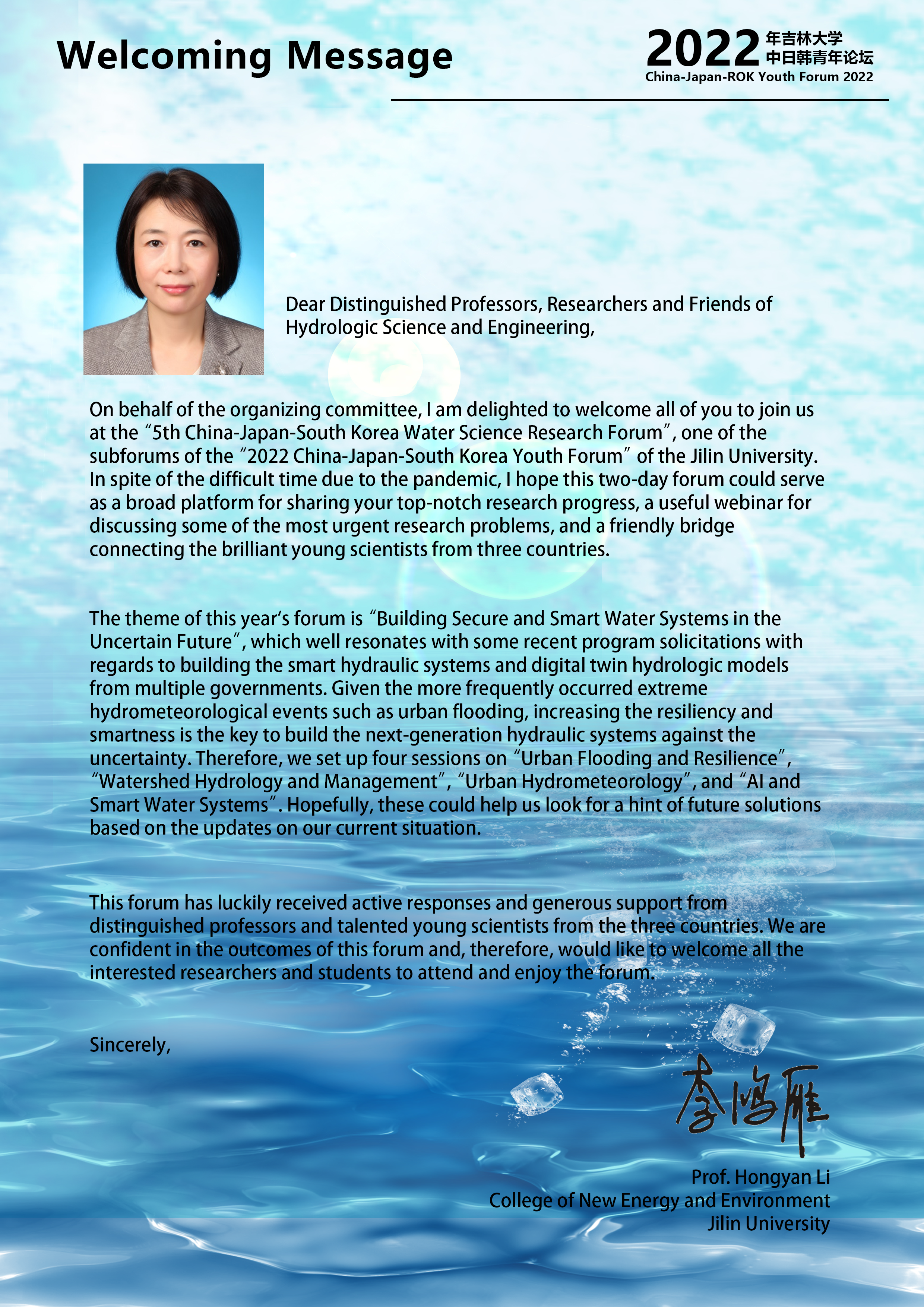 “中日韩青年论坛”,以“Building Secure and Smart Water Systems in the Uncertain Future”为主题,聚焦专业前沿性问题,为变化环境下水资源合理开发利用和保护提供对策。