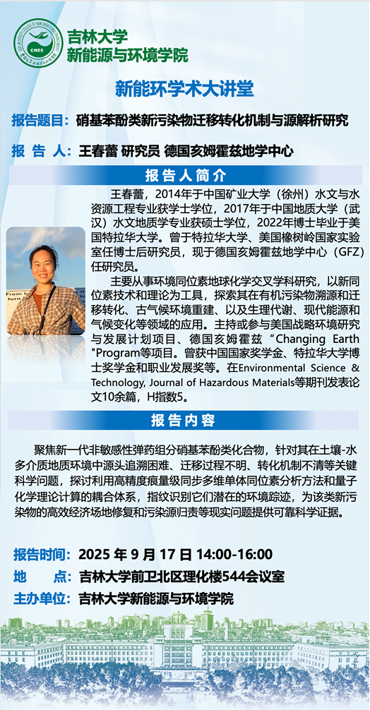 新能环学术大讲堂-硝基苯酚类新污染物迁移转化机制与源解析研究