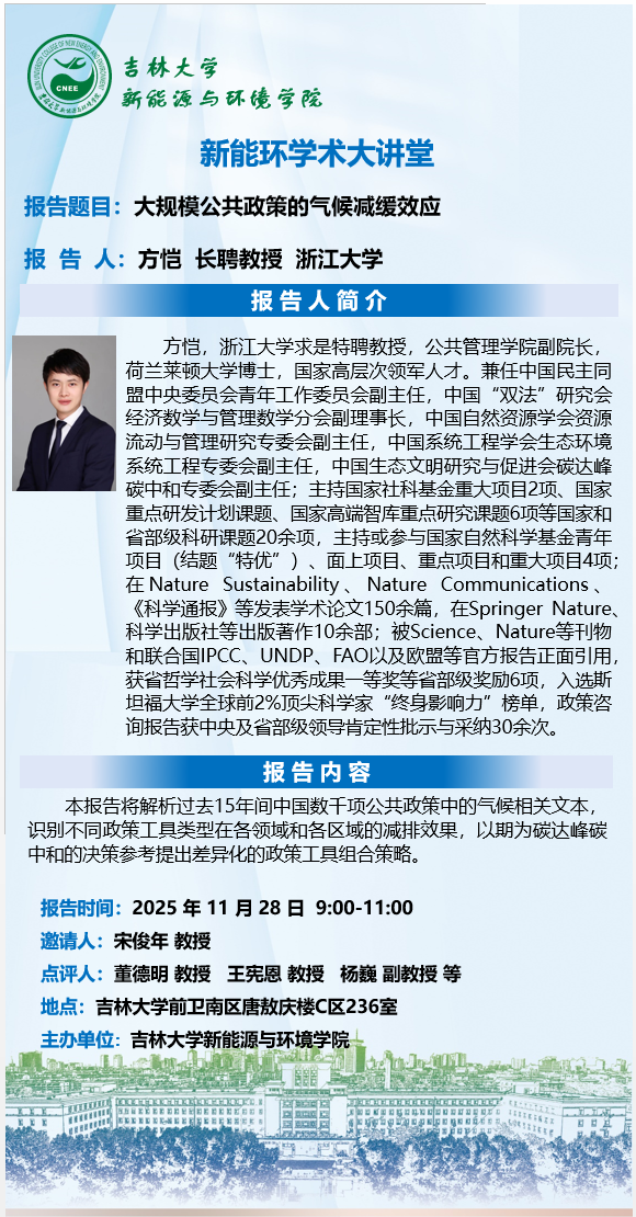 新能环学术大讲堂-大规模公共政策的气候减缓效应