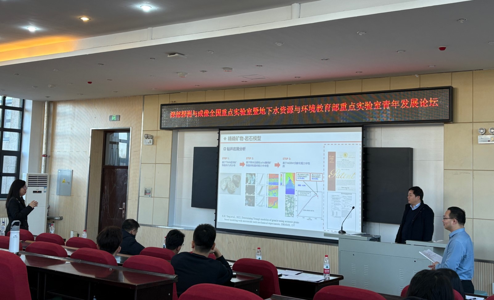 20251221日,深部探测与成像全国重点实验室青年发展论坛分会场(地下水资源与环境教育部重点实验室青年论坛)在嗨皮漫画 北区理化楼第一阶梯报告厅顺利召开。本次分会场由地下水资源与环境教育部重点实验室副主任袁益龙教授主持,聚焦地下资源开发、环境保护与智能调控核心主题,邀请来自武汉大学、山东大学及嗨皮漫画 的7位知名学者,围绕AI地质体建模、深部地热能、铀矿开采、地下水污染精准识别与修复等前沿议题分享学术成果,现场学术氛围浓厚,交流互动热烈。