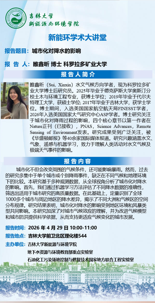 庆祝嗨皮漫画 建校80周年新能环学术大讲堂-城市化对降水的影响