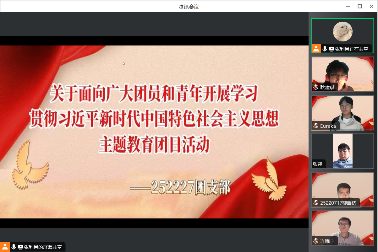 252227团支部在团支书张利果的带领下开展了本次团日活动,有包括16名共青团员在内共21名青年参加,以进行全面学习贯彻习近平新时代中国特色社会主义思想。