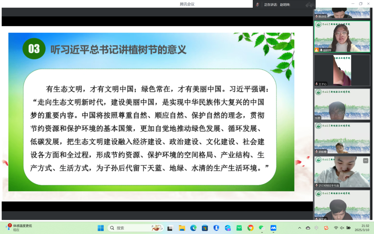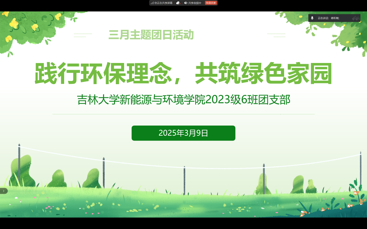 252325团支部安排了绿色环保知识问答环节。在环保知识的问答环节中,同学们通过思考和交流,围绕日常生活践行绿色环保理念展开讨论“拒绝“伪环保”:不因“拍照打卡”而浪费资源,不盲目购买“环保产品”制造新消费;保持“学习心”:关注环保新闻,了解“碳足迹”计算,用科学方法优化生活方式。