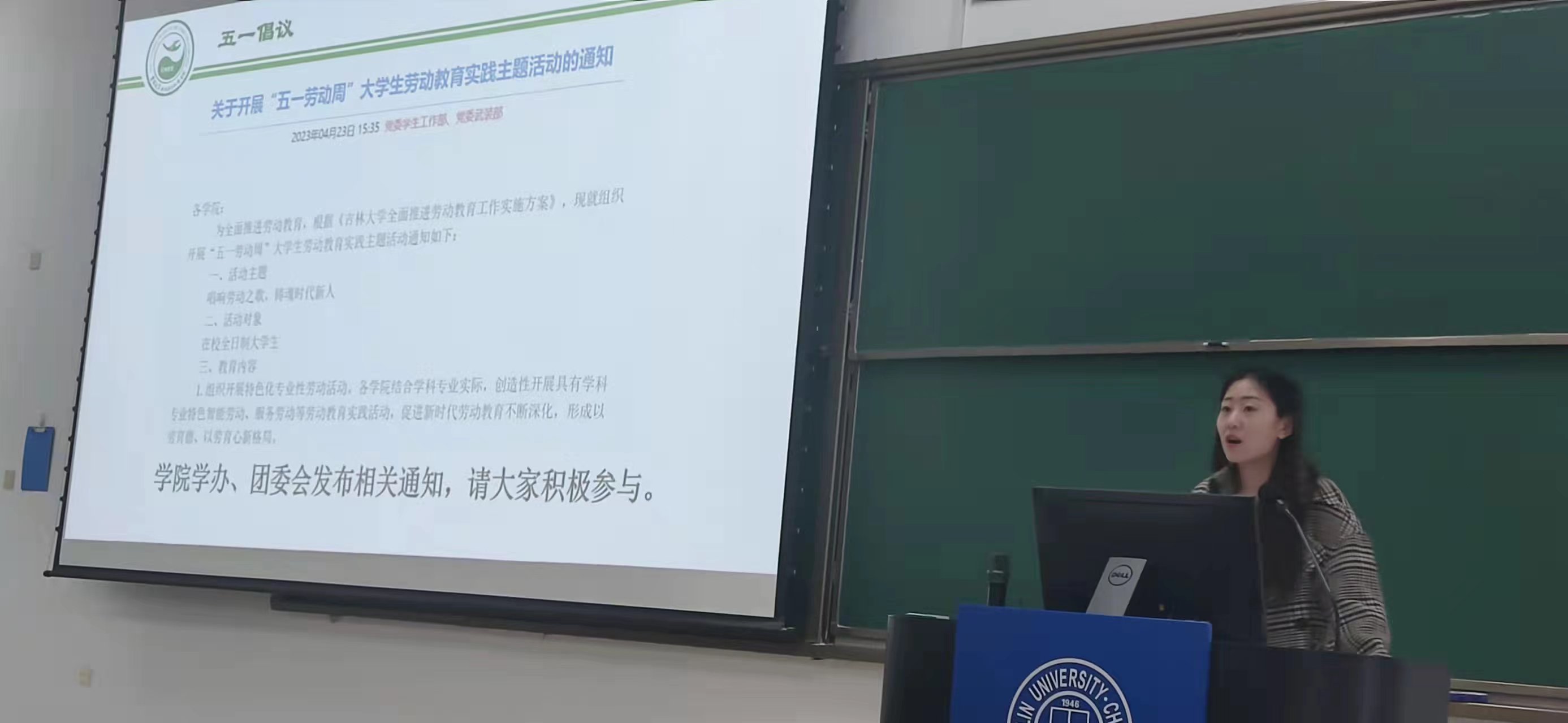 召开2021级本科学生年级大会,讲解离校申请、课程请假及“五一”假期期间安全注意事项,辅导员李薇老师主持本次大会。