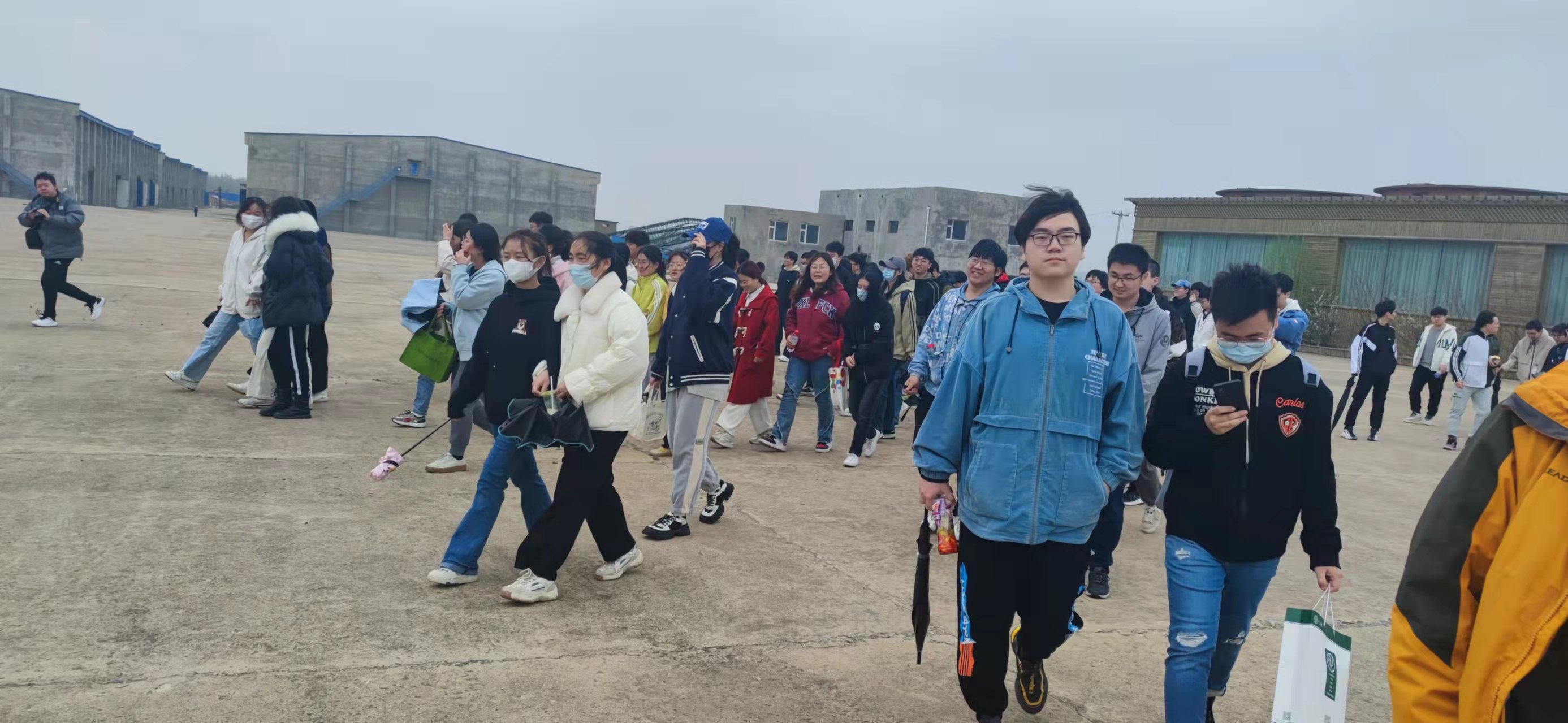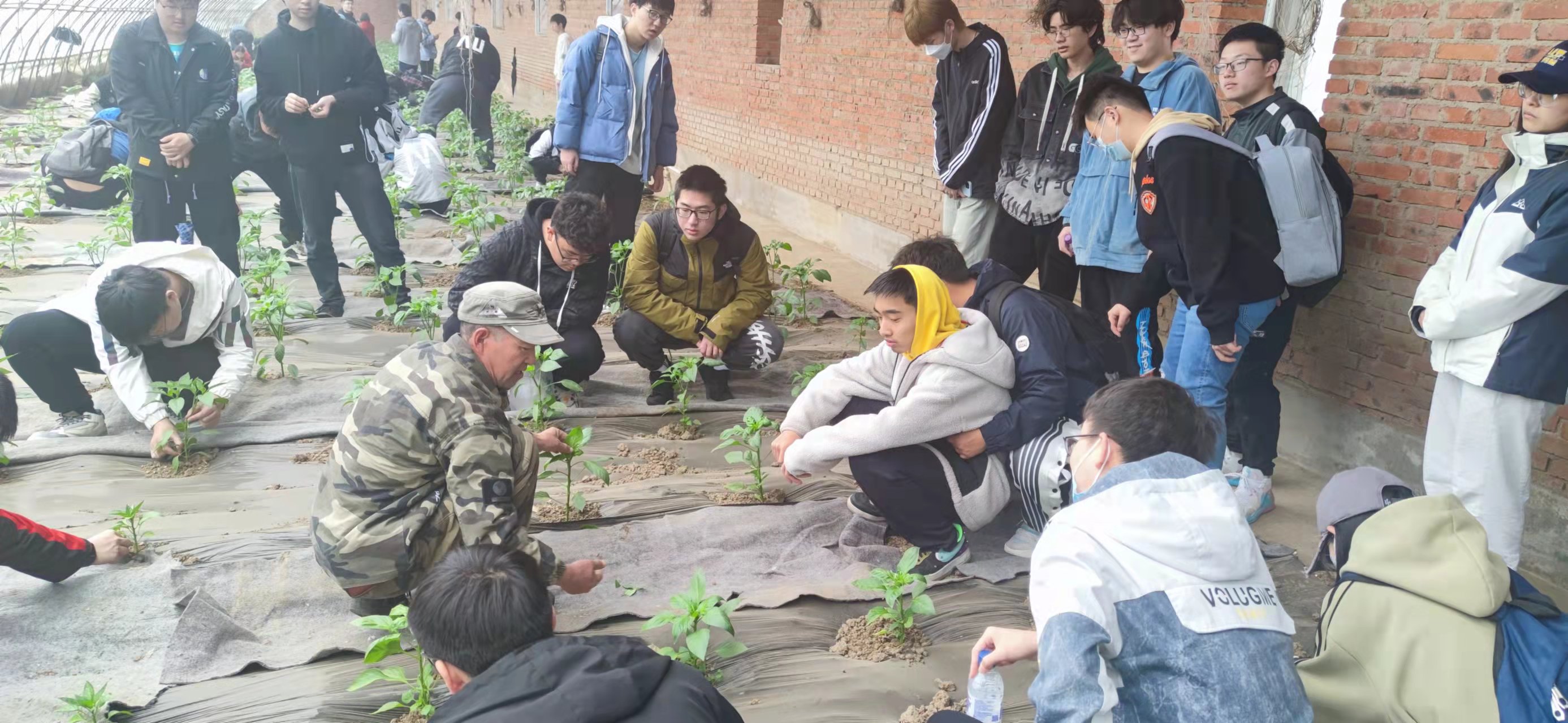 与生物与农业工程学院的同学共同合照留念,同学们因今日的相遇而欢喜,期待着即将到来的劳动实践。