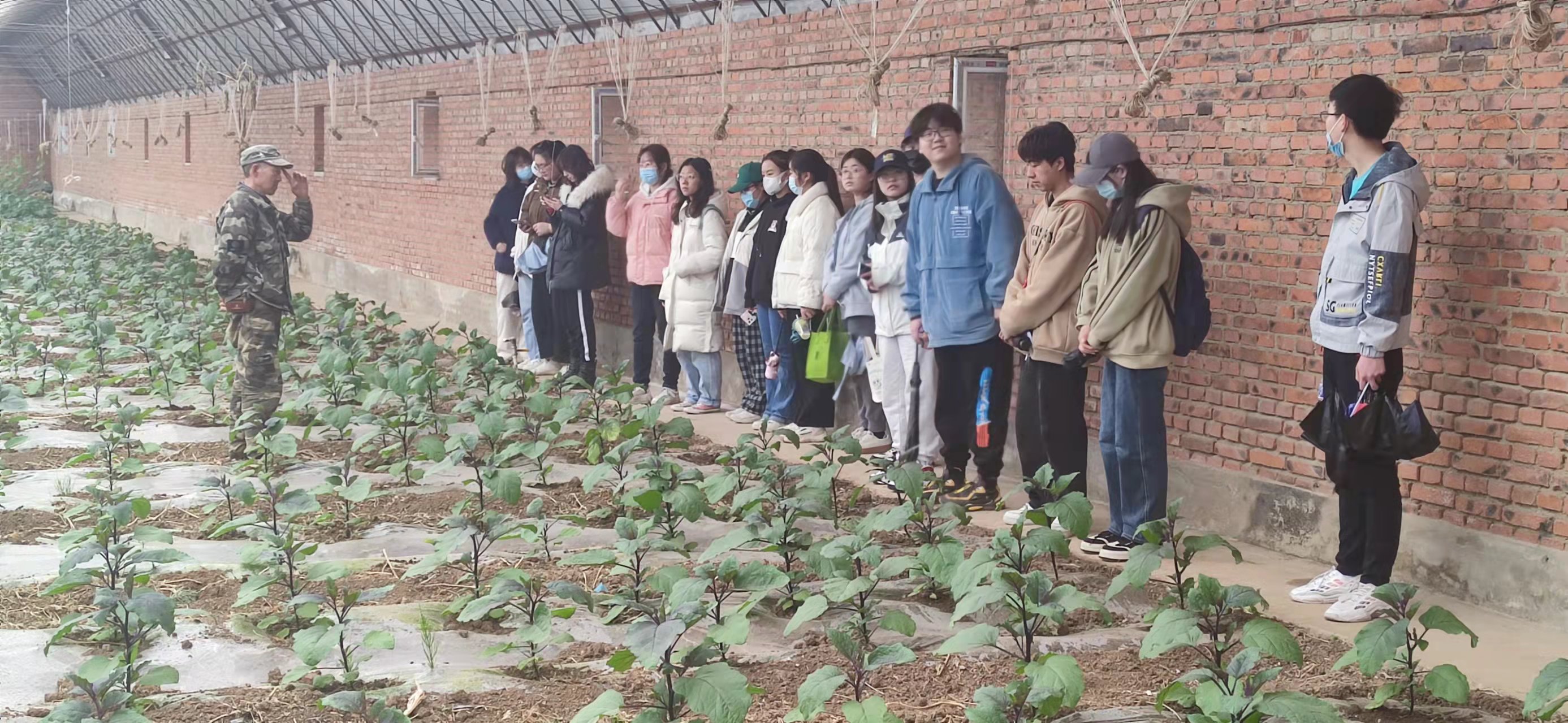 我校农林经济管理专业校友潘勇,作为东师农牧业农业劳动课程的主要负责人,带领学弟学妹们依次参观了中央储备粮仓储基地、生态黑猪养殖基地、林下养殖基地以及有机蔬菜种植基地,并介绍了本次农业劳动课程的具体内容及意义。在有机蔬菜大棚,农场的种植老师为同学们们讲述了辣椒和茄子的基本知识,并教学了如何对辣椒和茄子的侧枝进行修整。教学完毕,同学们分组认领一垄地进行了蔬菜打侧枝的实践课程。