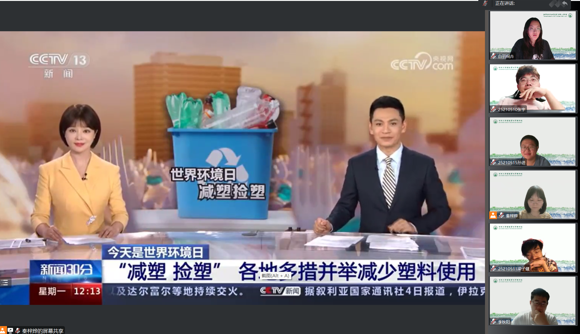 等网络上直观丰富的影视资料,同学们了解到塑料危机正威胁着环境、人类健康和经济,明白了世界环境日口号的深刻内涵,学习了塑料污染、土地污染的现状、危害以及防治措施。