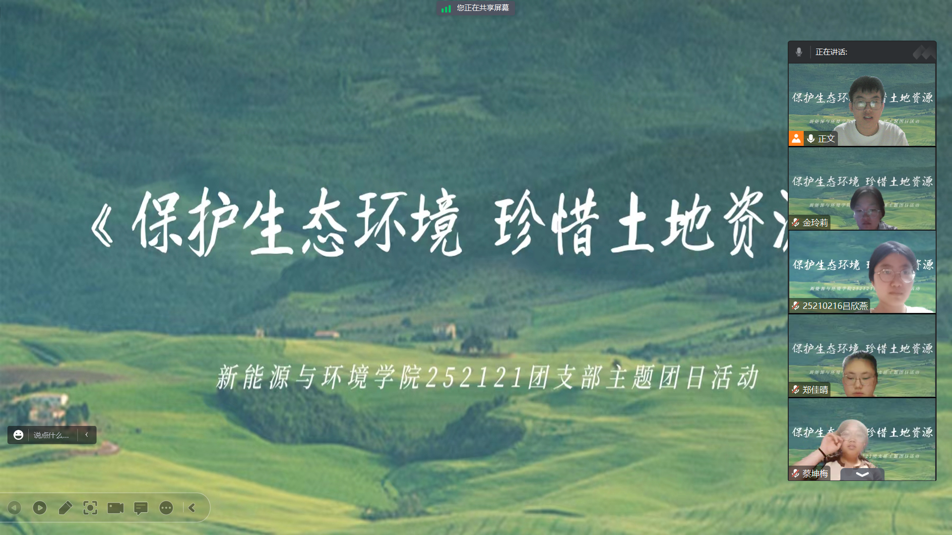 252204班团支书为大家分享了关于地球一小时的环境科普知识,并为同学们简单讲解其中的原理和活动的目的与意义。