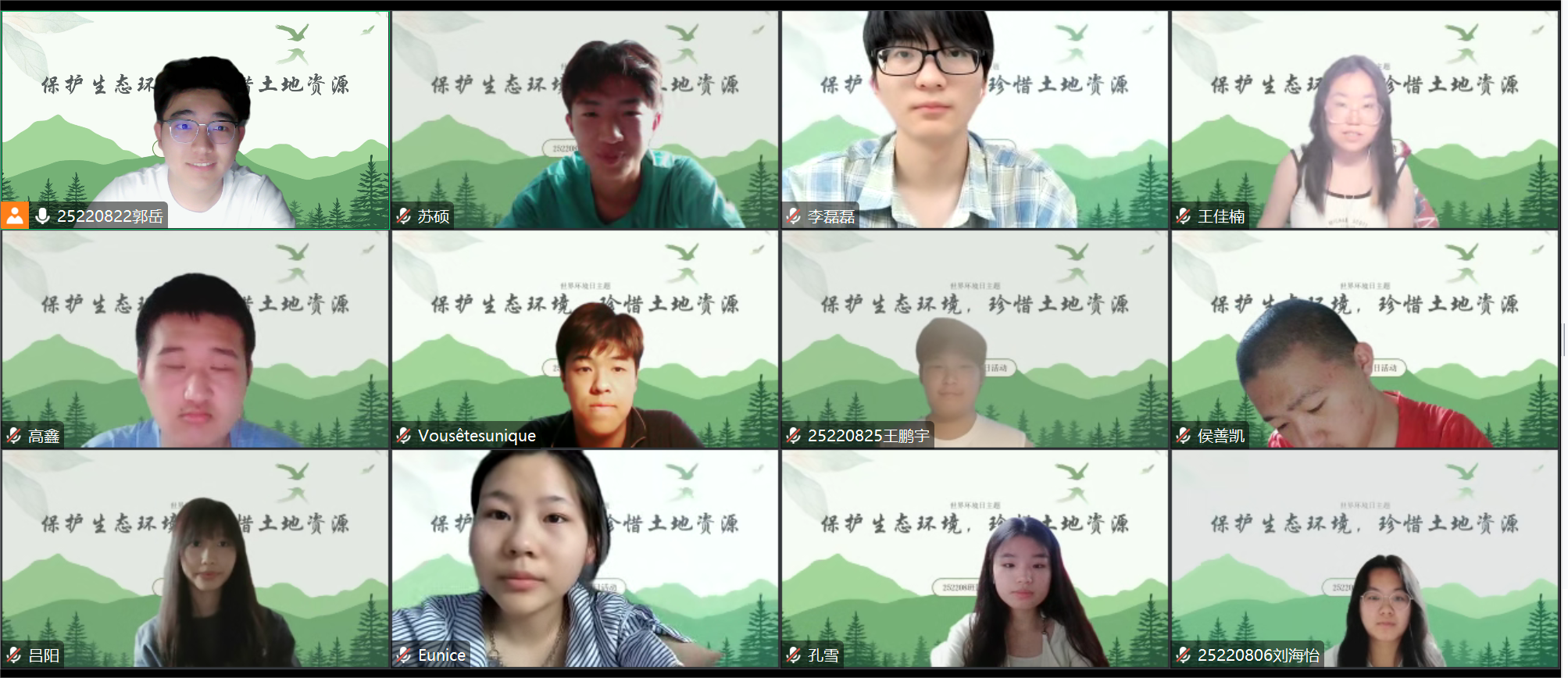 252208班团支部在团支书郭岳的带领下开展“保护生态环境 珍惜土地资源”主题团日活动暨全国土地日和世界环境日主题团日活动。本次团日活动通过线上腾讯会议的方式举办,参与人员有支部内13名共青团员和5名班级成员。