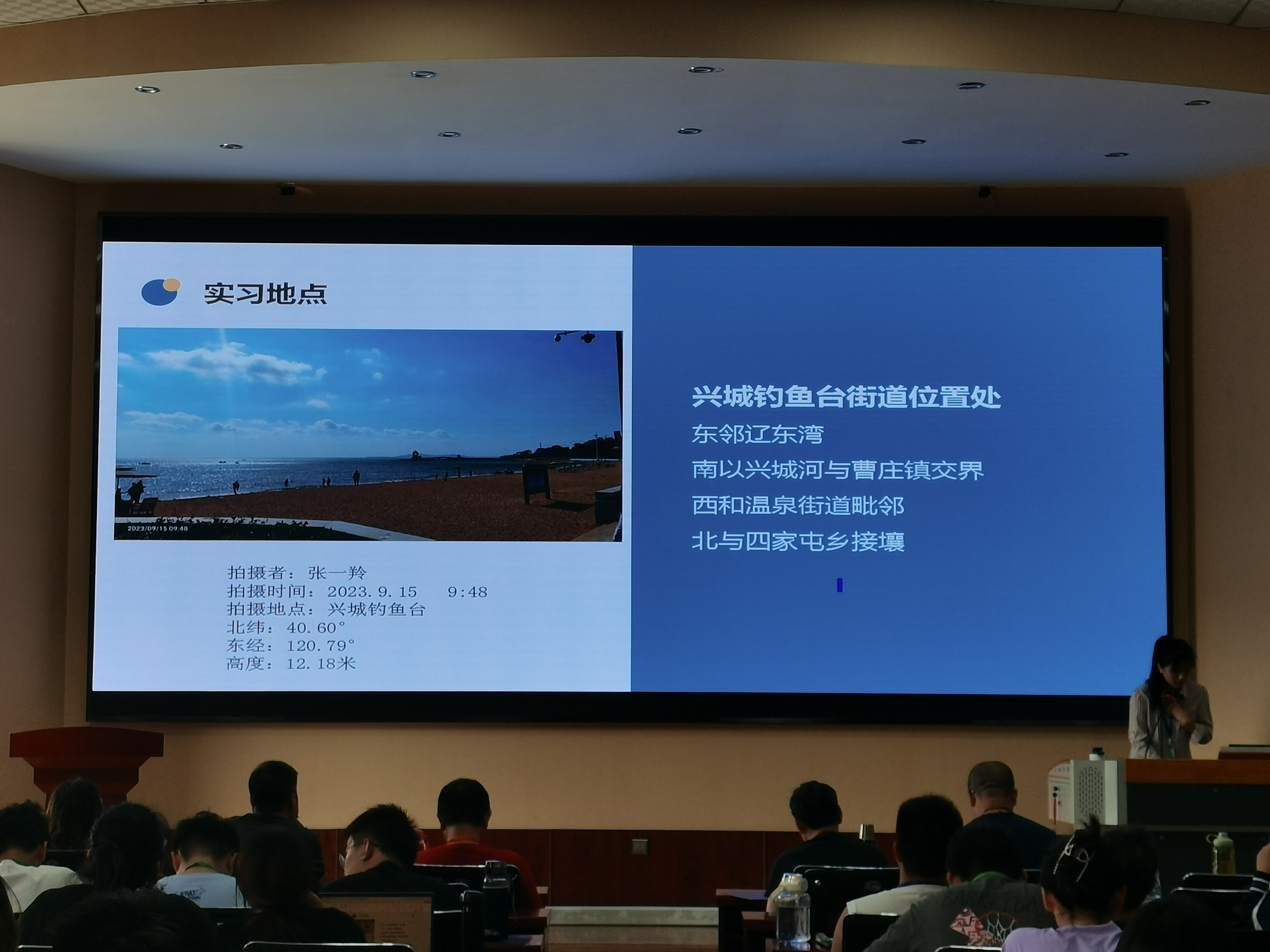 按照实习计划表,9月17日上午8:45时分同学们在报告厅集合,准备对钓鱼台海滨和首山的实习内容进行汇报。四个大组同学共同协作、精心制作汇报的PPT,汇报这两天实习过程中学到的知识。在同学们汇报后,老师们对同学们的讲解做出评价指正,同时提示同学们在汇报过程中应该注意的问题。