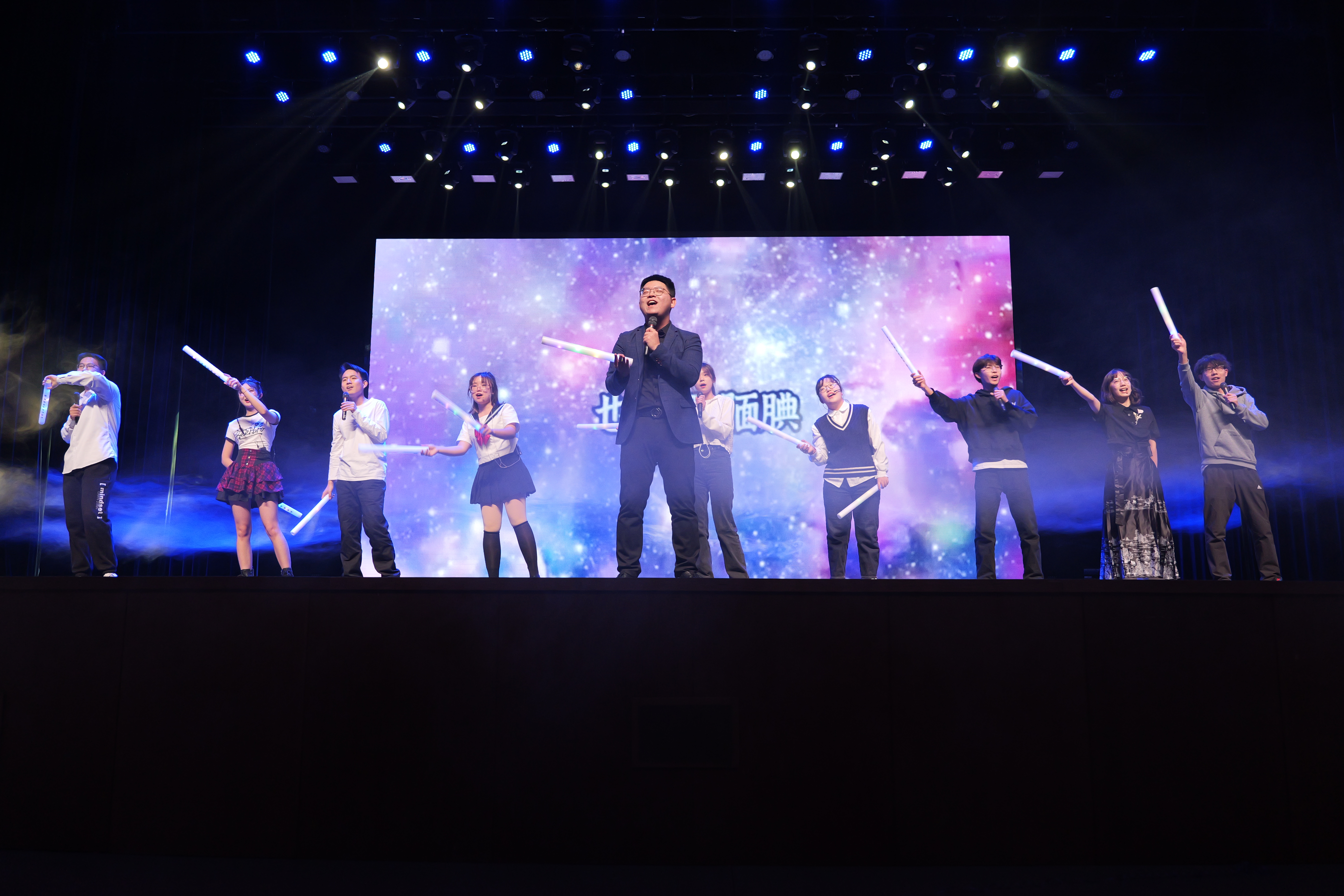 2023级辅导员姜岳彤老师和2023级辅导员助理们也为同学们准备了精彩的节目——合唱《仰望星空》。星空,看似遥远,其实它离我们并不远,就像我们的心,我们的梦,只要你努力踮起脚尖,就不再遥远。在他们的歌声中,充满了对新生们热切的期待和真心的祝福。