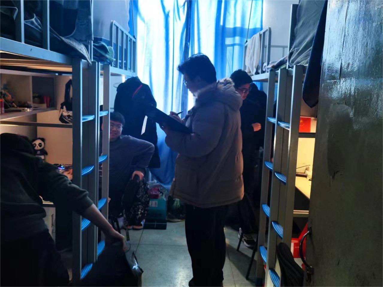 党委副书记吴哲带领学生工作办公室的全体辅导员深入寝室,对两个校区四个公寓楼的247间寝室进行走访,达到本科学生寝室全覆盖。