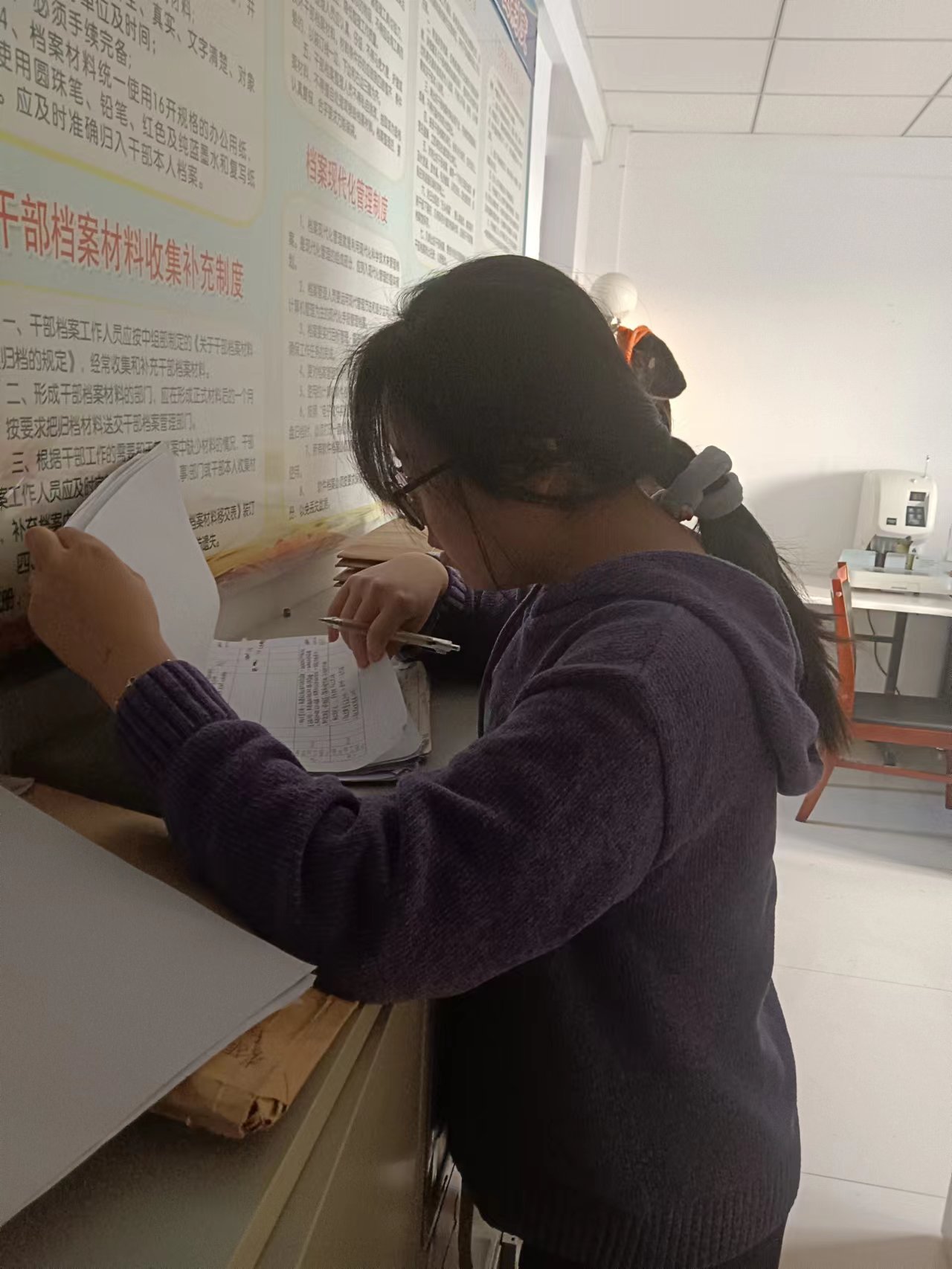 实践第一日,我跟随档案管理人员一起来到人事局整理人员的档案。在这里能看到诸多水利人来时的路,在这之中,有人从水利高校毕业回到新疆为新疆水利工程增砖添瓦、有专业技术人员在水管一线保障全县供水、有领导班子坚守在各个水库进行24小时水情监测。通过整理档案,我了解了求学求职路上的曲折坎坷、看到了水利人在水利岗位的坚守、看到了执着的人奋斗的一生、共产党人的坚毅与执着,也为自己未来求学、求职、入党的路拨开一层迷雾。