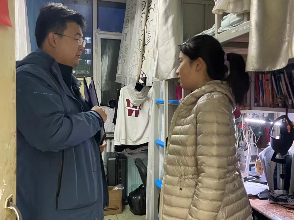 4月8日,2021级辅导员李薇老师对南苑一公寓、南苑二公寓17间寝室进行走访检查,了解学生清明假期情况,提醒学生及时调整学习状态,加强课堂学习,避免考前突击。12日,李薇老师来到环境工程专业课《水质工程学》课堂,任课老师反馈同学们课堂出勤情况较好,本次课堂1人迟到。