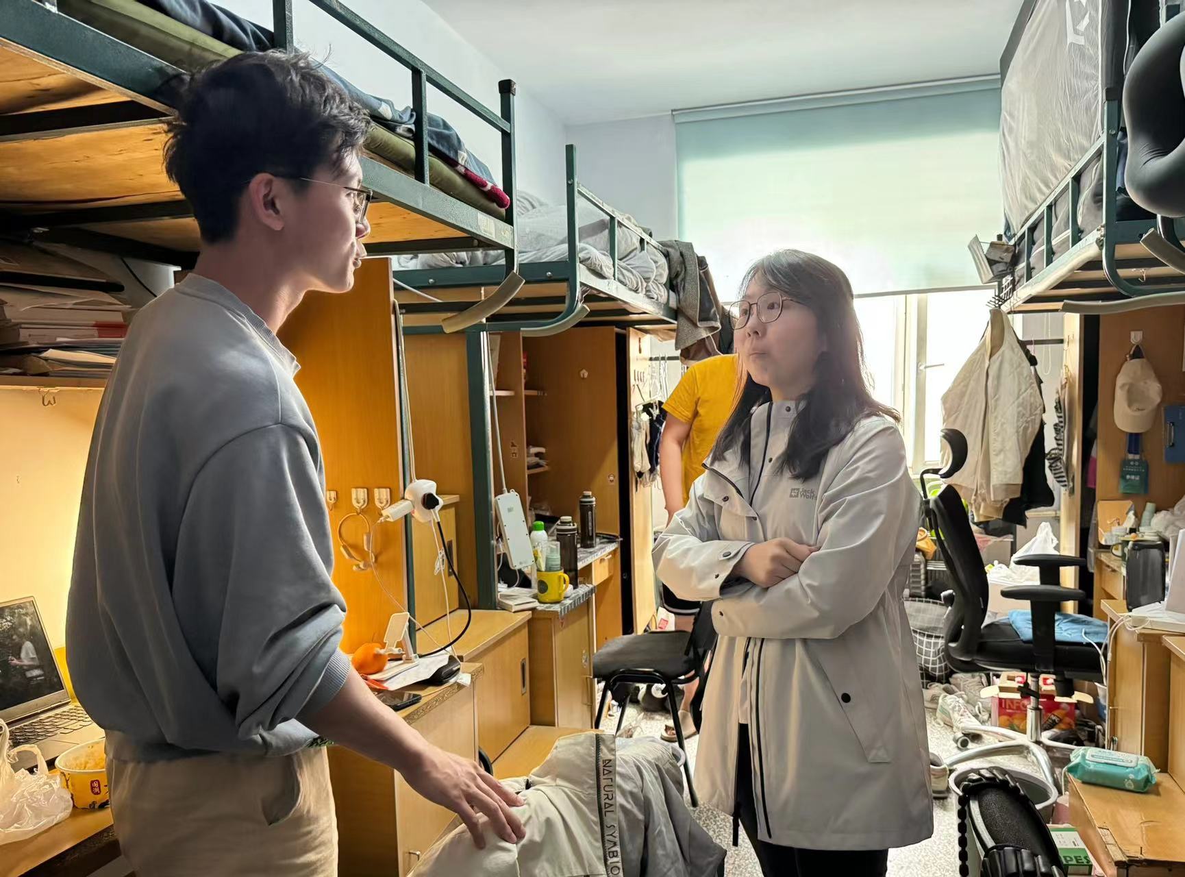 4月26日,2020级辅导员霍美汐老师对朝阳校区五公寓、七公寓寝室进行检查,本次检查重点为寝室卫生及防火安全,多数寝室卫生状态良好,没有违章电器,走访过程中为朝阳七公寓一名学生解决了寝室出现臭虫的问题。