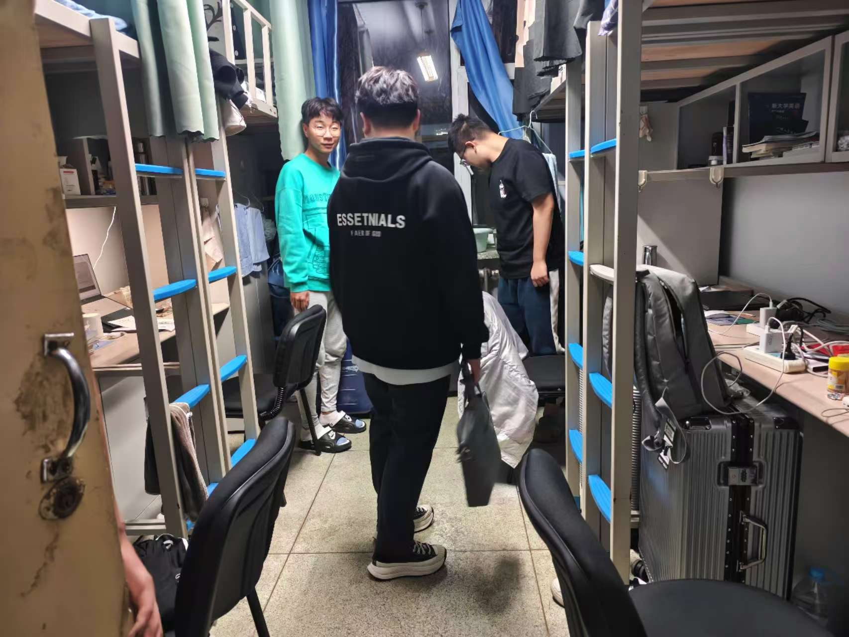 10月22日,2024级新生辅导员助理姜兆轩进入中心校区南苑一公寓,开展寝室卫生安全检查工作。查寝过程中询问寝室供暖温度情况,了解不同地区新生对当前温度是否习惯,并叮嘱同学们早晚适当增加衣物,保持好寝室卫生。