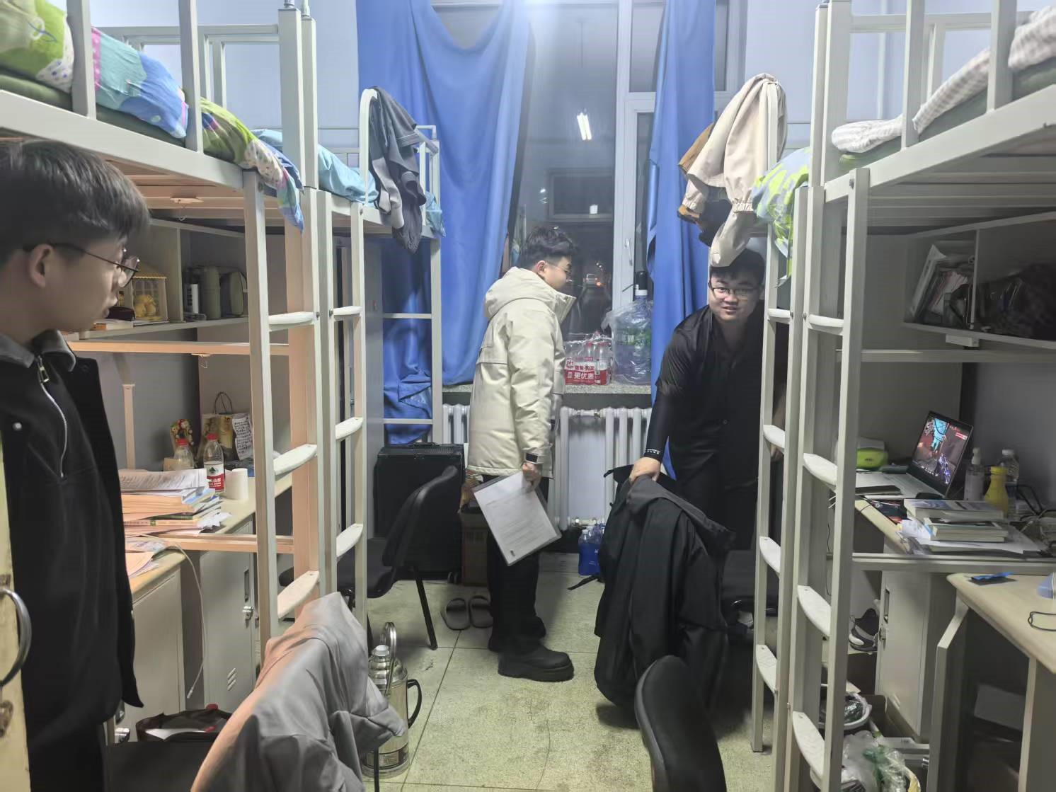 3月18日,2024级新生辅导员助理姜兆轩进入南苑一公寓检查寝室卫生情况和消防安全情况,同时提醒同学们本学期课程较多,要制定科学的学习计划保证每门课程取得良好的学习效果。