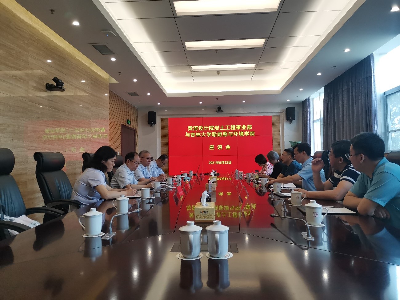 22日上午,汪祥松一行还前往校友所在单位黄河勘测规划设计研究院有限公司进行合作交流。座谈会上,黄河设计院岩土工程事业部副总经理房后国等多位校友介绍了自己部门发展情况,领域前沿技术和校友的发展现状。汪书记和各位老师对校友们的工作业绩给予充分肯定和赞许。双方就科研与生产实践如何有机结合,专业领域如何实现突破发展,如何增强新动力等展开探讨,最后,双方对于校企合作、人才需求、项目开发等多个方面,以及“产学研用”一体化的构想,达成了框架性的初步协议,一致同意尽快细化落实。