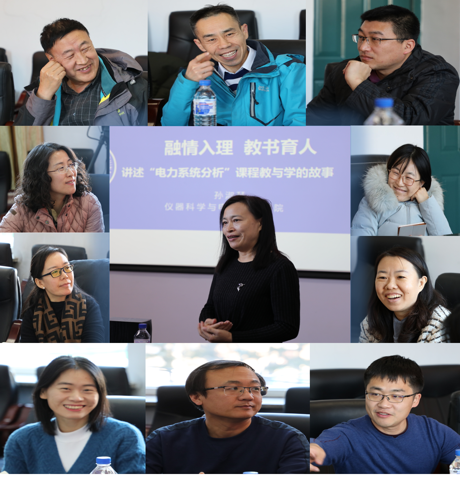 孙老师以《融情于理,教书育人》为题,结合自身成长和所授课程的经历,讲述了关于“电力系统分析”课程中教与学的故事,介绍了专业课融入思政教育的一些方法和技巧。交流会氛围热烈,与会教师积极参与互动。