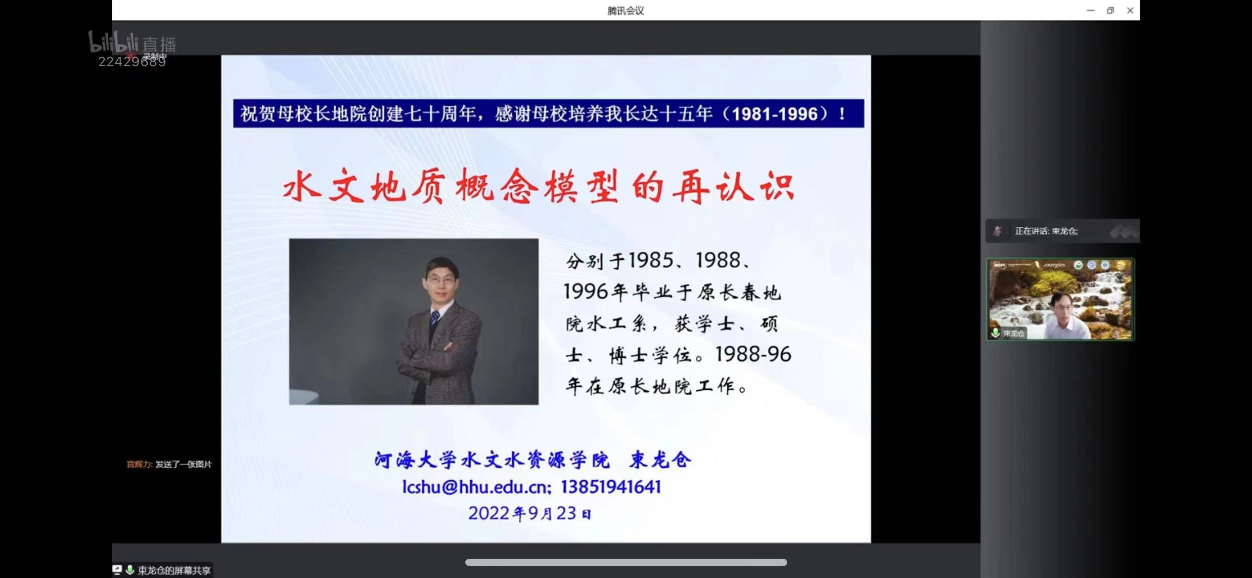 许院长代表学院对本次参会的校友和师生表示热烈欢迎并为报告会致辞,带领大家一起回顾了七十年来学科专业革故鼎新的峥嵘岁月,表达了对老一辈水文地质人、校友、社会各界和学校长期以来支持学院建设的感谢。寄语全体师生站在新的历史起点,面向未来,同关心、支持学科建设的校友、同行们携手同行,共同推动我国水文地质学科的高质量发展,共创美好未来!