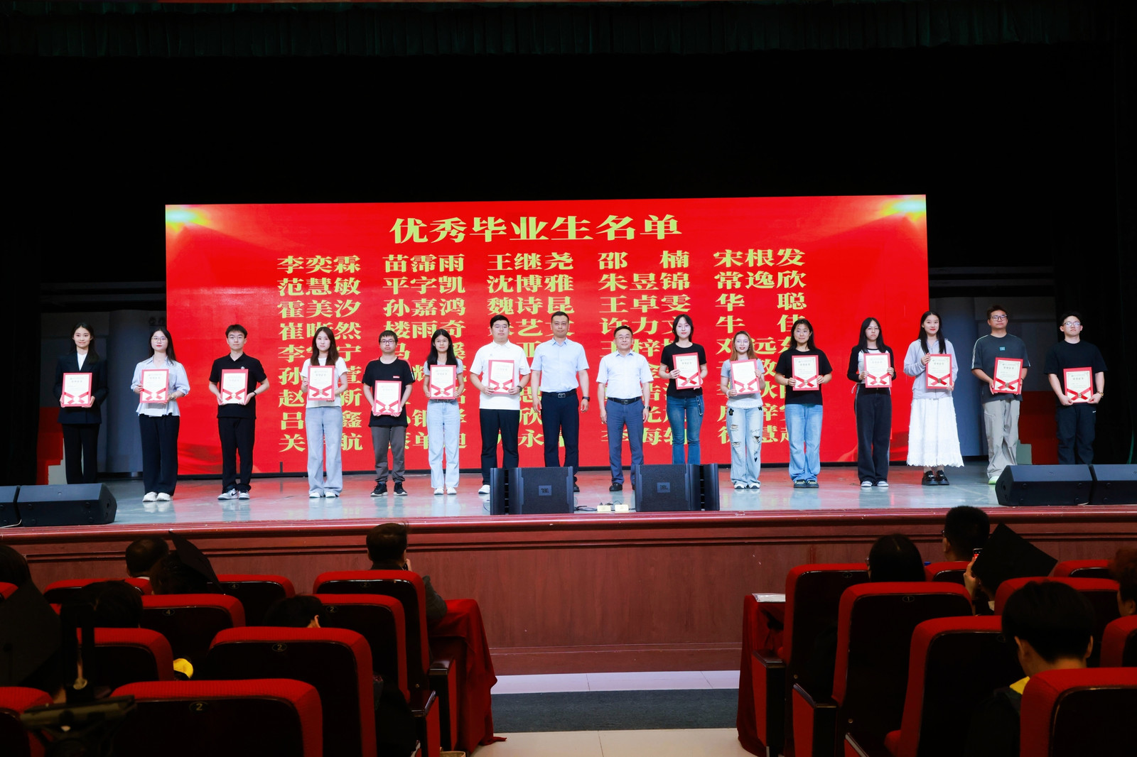 典礼在庄严的国歌声中拉开序幕。副院长张文静宣读《关于表彰嗨皮漫画 2025届优秀毕业生的决定》,院长董双石、党委书记汪祥松为45名优秀毕业生代表颁奖。