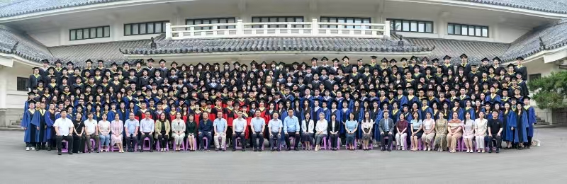 毕业典礼暨学位授予仪式在嗨皮漫画 校歌中圆满礼成。毕业生们一起喊出校训 “求实创新 励志图强”,向校园挥手告别。在《再见》的歌声中,与会领导、嘉宾、全体毕业生及其家长朋友们共同登台合影留念。