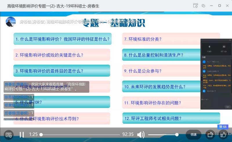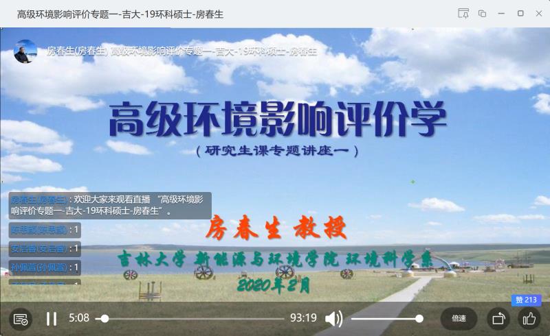 房春生教授开设的环境科学专业硕士研究生专业课《高级环境影响评价学》顺利进行了首次网络直播授课,成为嗨皮漫画