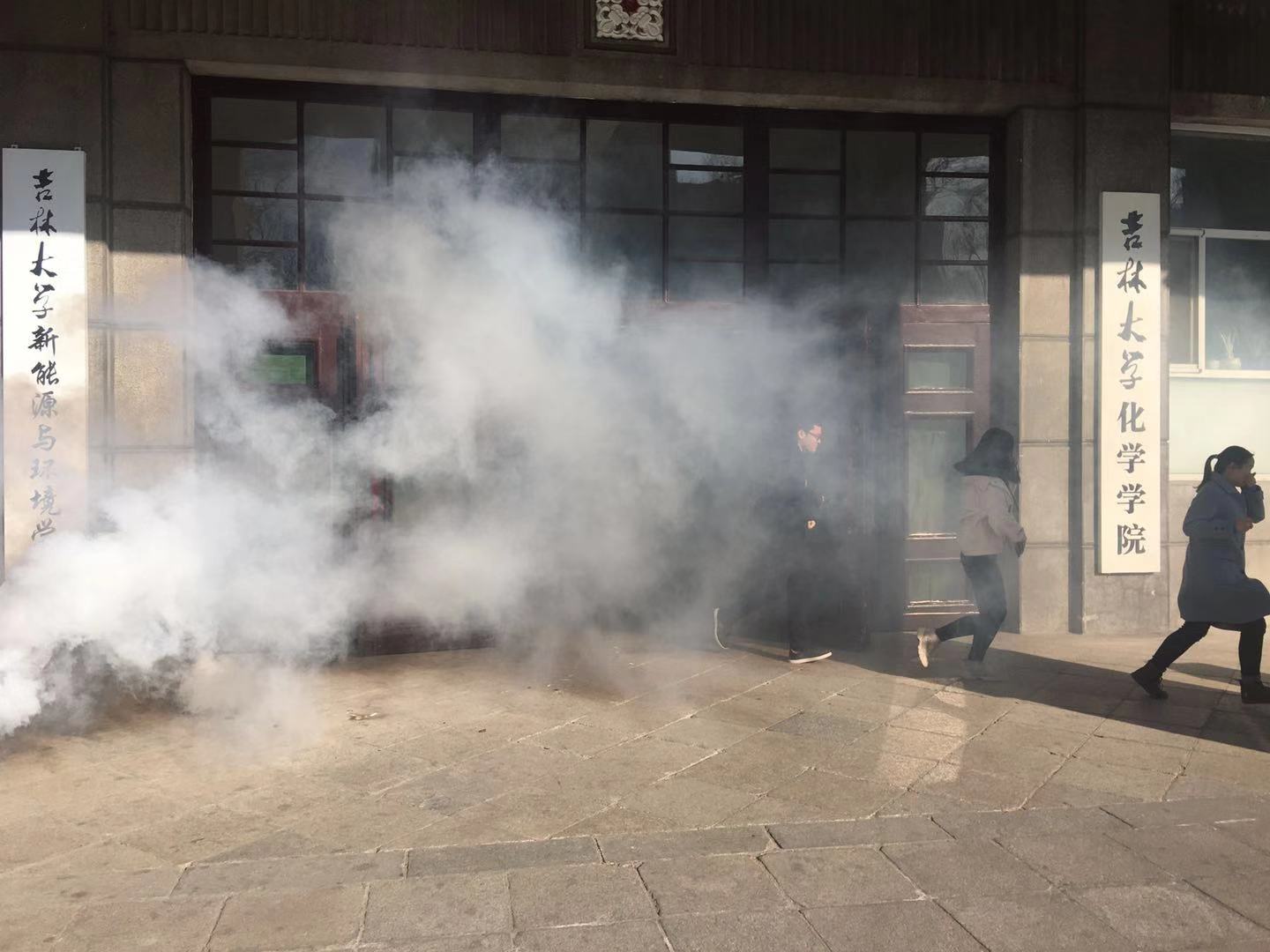 930分,消防疏散演练正式开始,模拟理化楼338房间发生火灾,报警响起,参演的师生从所在办公室、实验室、工作室迅速从消防疏散通道撤离,楼内疏散人员按照预先的消防演练预案疏散撤离人员到理化楼门外的集结区,完成了火灾逃生疏散。