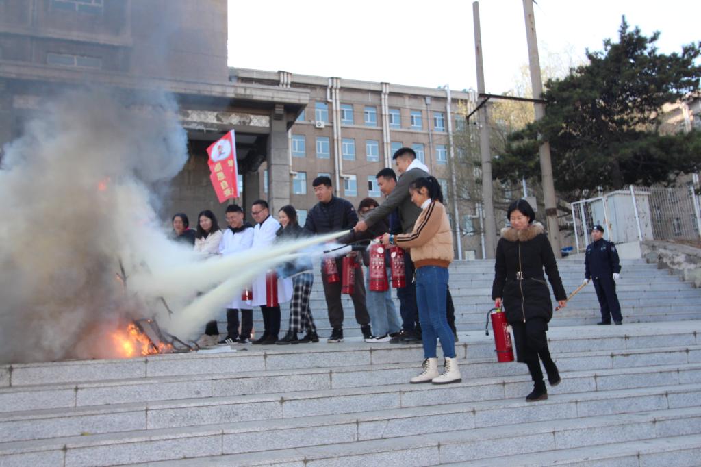 在消防灭火演练中,北区保卫办消防科长唐小兵给参加演练的师生员工们详细讲解和演示了消防面罩的使用和二氧化碳灭火器、干粉灭火器使用方法以及对油锅、床铺、建筑物、液化气罐的灭火方法。参演的师生们分组进行了实际操作灭火演练。