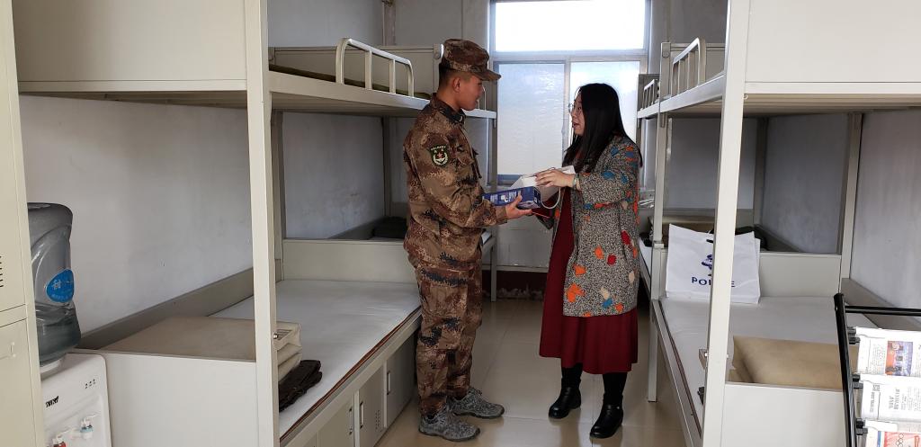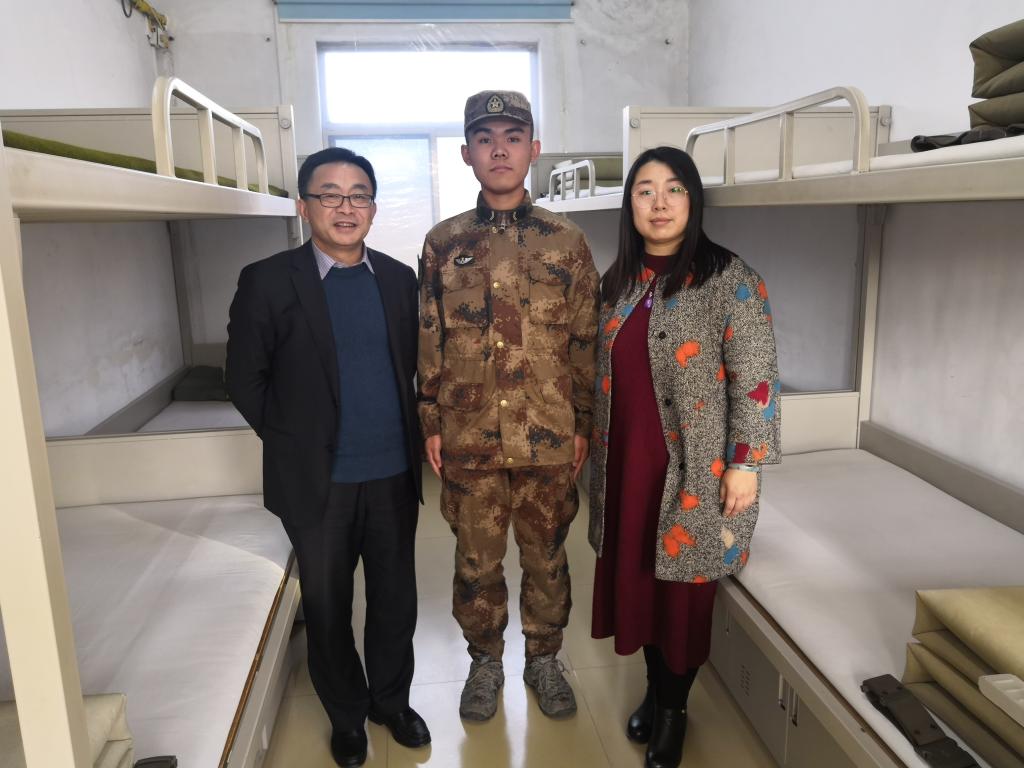 党委书记汪祥松率辅导员孟婧莹老师赴东莞樟木头和山东潍坊某部队,走访慰问两名学生,与学生及其指导员展开了座谈会并送去了慰问品。
