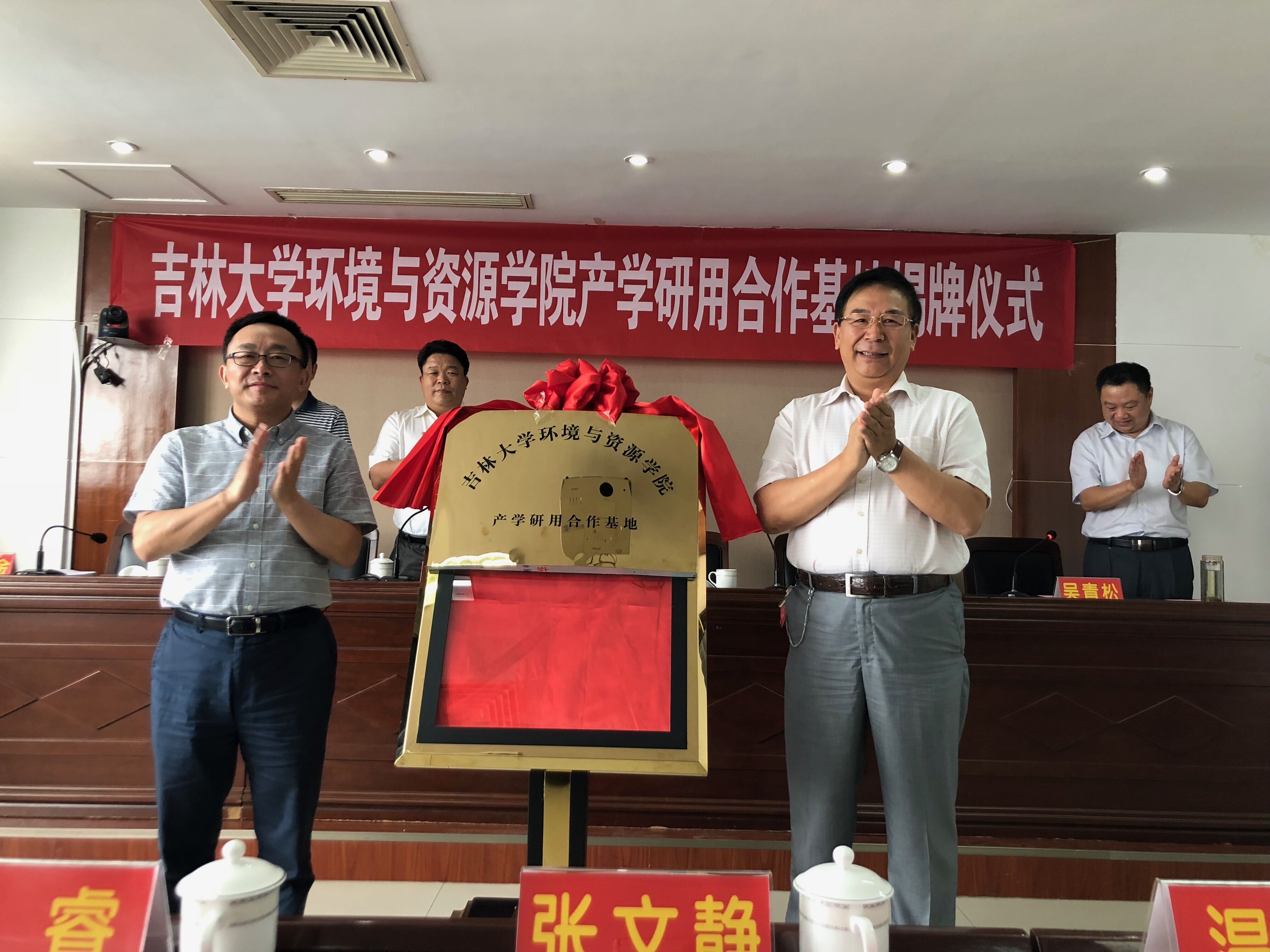 党委副书记汪祥松指出,科研院校和专业地勘单位的合作是合拍型的结合,是地质工作服务国家的担当体现,希望双方加强深度合作,实现互利共赢。地矿局禄丰年副局长作重要讲话,他强调要着力学习实践习近平生态文明思想,围绕生产科研中的薄弱环节,紧盯重大项目中的实际需要,依托本次产学研用合作基地,有的放矢,引智借力,加强合作,推动项目建设上台阶,成果质量上水平,在服务美丽河南建设上展现新的更大作为。在热烈的掌声中,禄丰年和汪祥松两位领导共同为本次产学研用基地揭牌。
