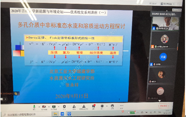 于2020年9月-12月期间,通过腾讯会议线上平台成功举办了本年度“优秀校友系列讲座”系列活动。本次活动每月开讲2次,共开展了8场系列讲座,分别由北京工业大学张永祥教授、清华大学王洪涛教授、中国石油大学曾溅辉教授、清华大学李广贺教授、黑龙江大学井立强教授、生态环境部环境规划院严刚副院长、广州大学胡春教授、河海大学束龙仓教授主讲,由许天福院长和院长助理张文静教授主持。