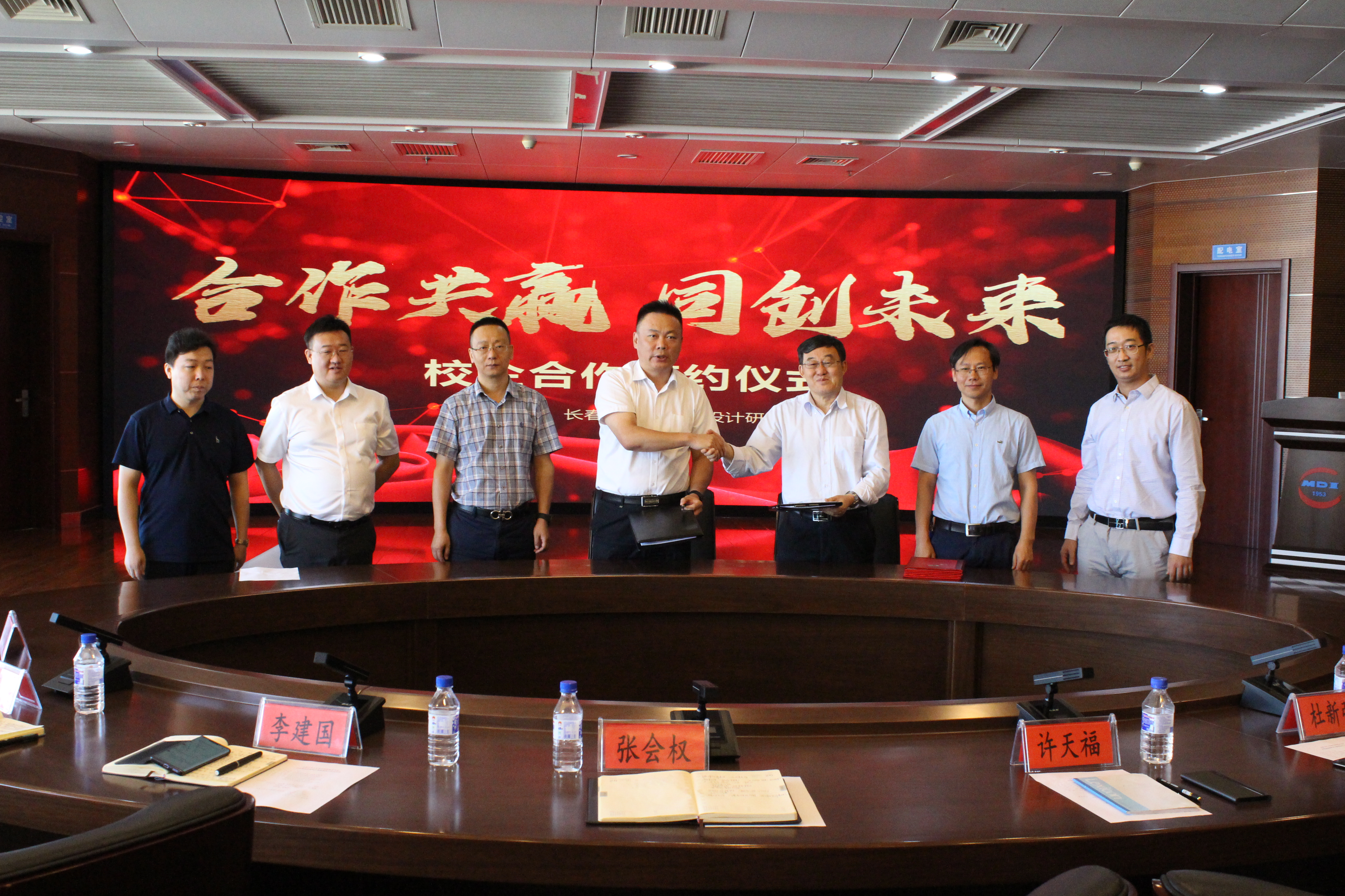 最后,许天福院长和张会权院长共同在合作备忘录上签字,并为研究生培养实践基地揭牌;学院许天福院长亲自为张会权院长、李建国总工、孙宏亮主任颁发了校外合作导师聘书。本次会议的圆满结束,标志着两院研究生联合培养实践基地的正式成立,双方建立良好合作基础,约定共同推进长春市新型城市雨洪管理体系的建设和完善。