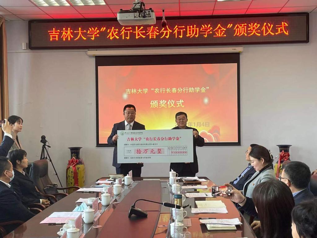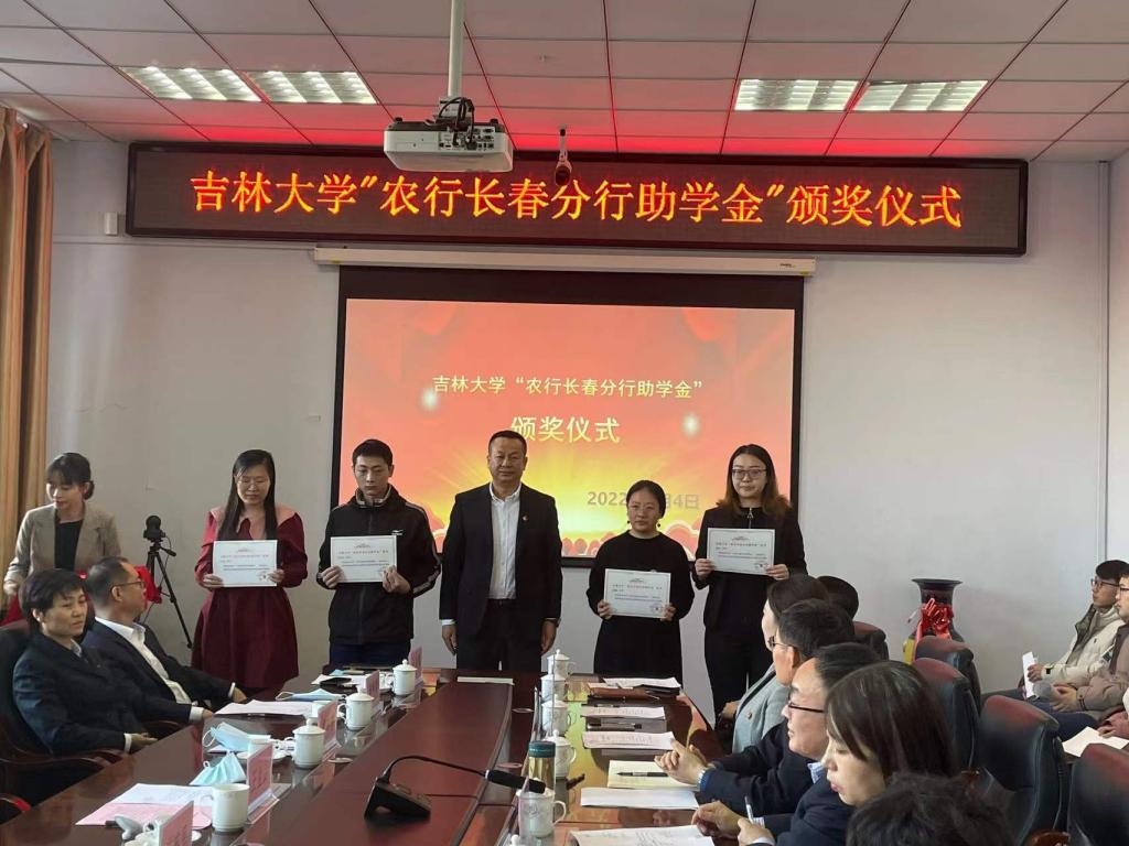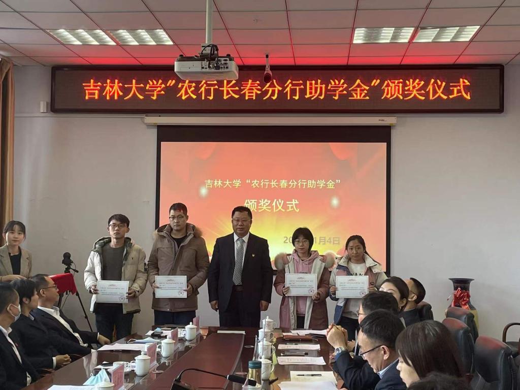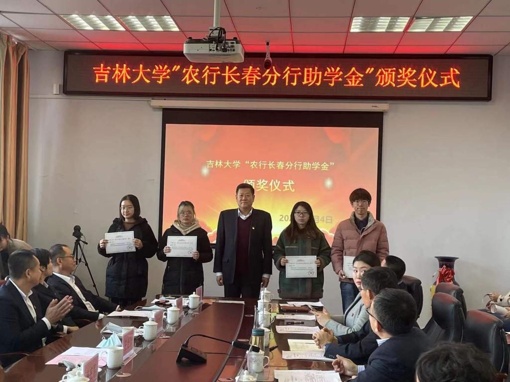 “农行长春分行助学金”,农行长春分行行长王金、副行长李韩鹏和韩宪军为学生颁发了助学金。2019级博士研究生梁旭代表获奖学生发言,感谢农行长春分行的捐赠和学院的培养,励志奋发图强,饮水思源,用实际行动为社会做更大的贡献。王金山行长在讲话中对嗨皮漫画