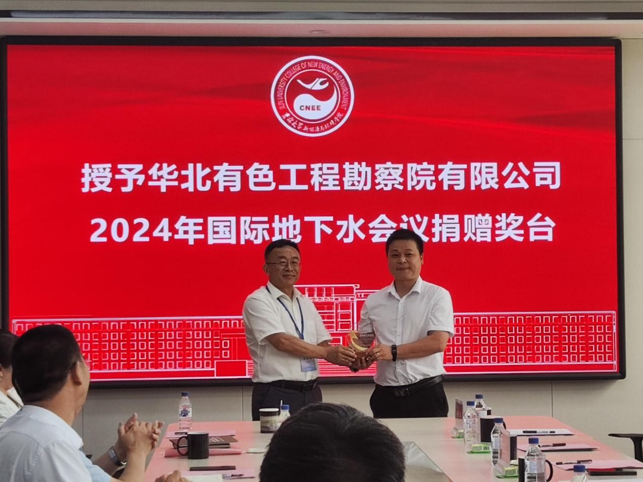 党委书记汪祥松代表学院授予华北有色工程勘察院有限公司捐赠奖台。