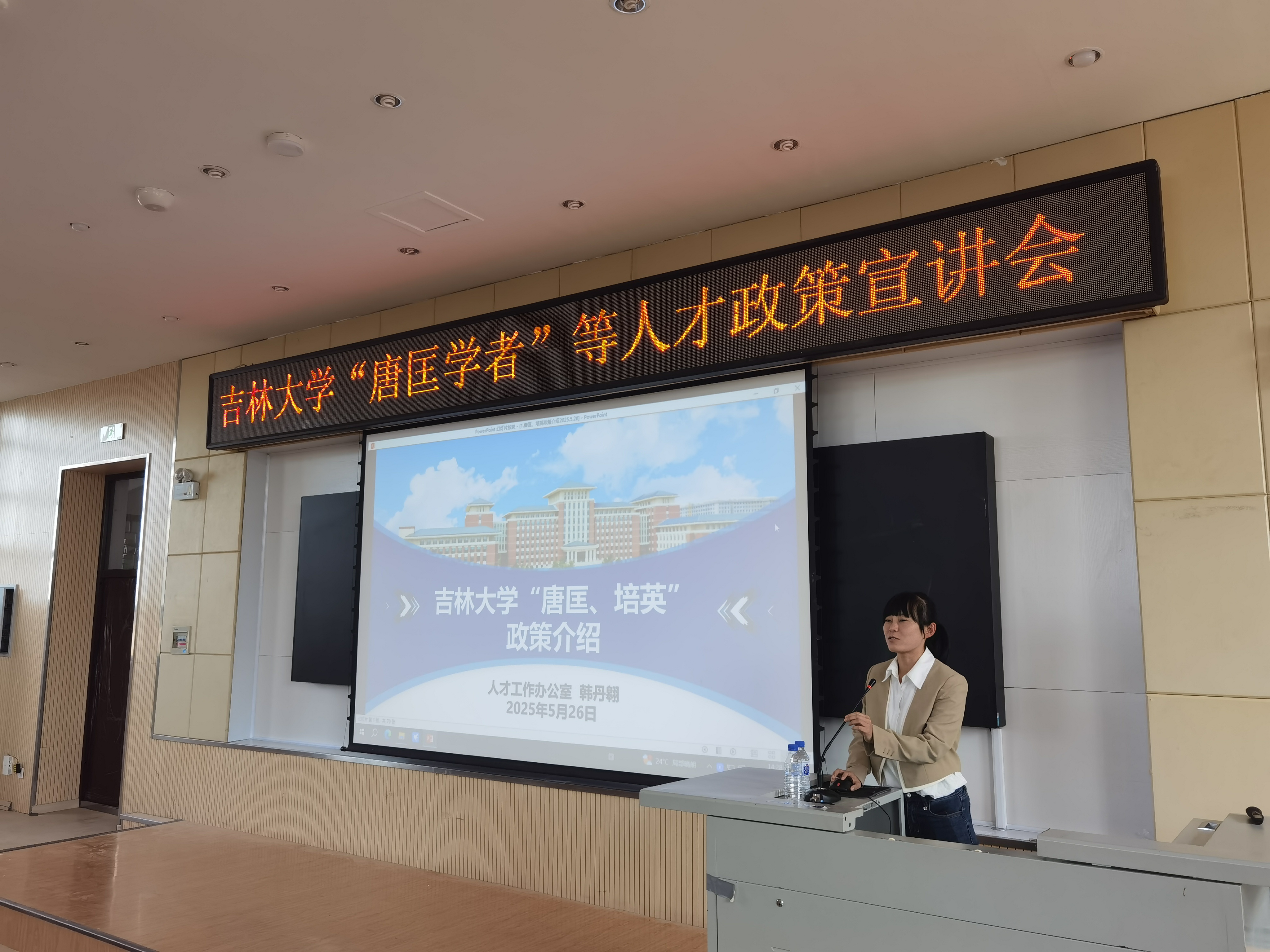张文静副院长代表学院党委对韩丹翱老师的到来表示热烈欢迎,同时对韩老师对全体教师的政策宣讲表示忠心的感谢,希望全体教师在未来能够更多的关注和了解人才政策和项目,积极参与项目申报,为学院的发展做出更大的贡献。