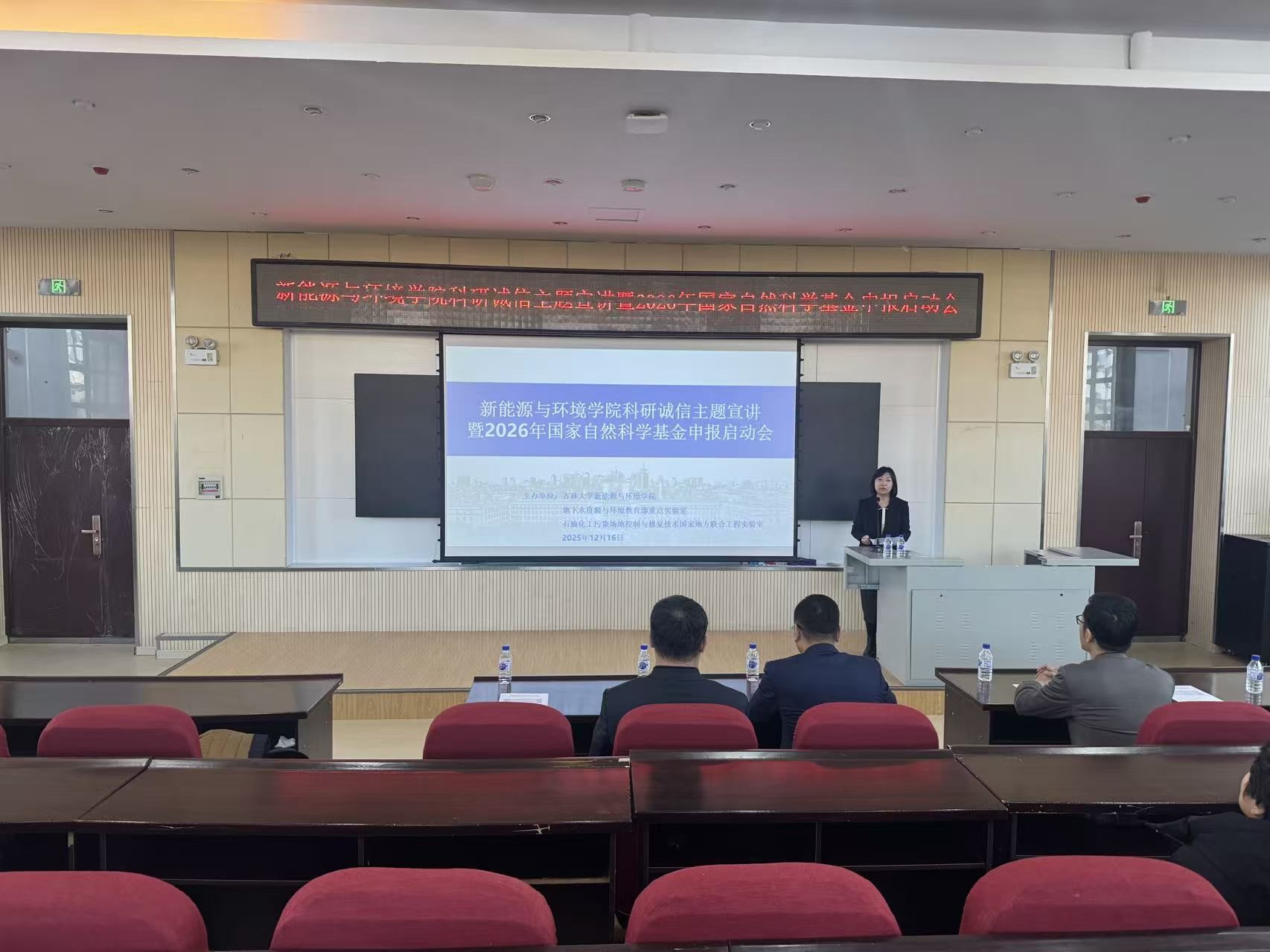 在前卫北区理化楼召开科研诚信主题宣讲会暨2026年度国家自然科学基金申报启动会。会议旨在强化学术规范、弘扬科学家精神,全面动员和部署新一年度基金申报工作,为提升学院科研创新能力凝聚共识、汇聚合力。院长董双石教授、学校科技管理办公室副主任吴昊,全院教师、在站博士后及博士研究生代表共同参会。会议由学院副院长张文静教授主持。