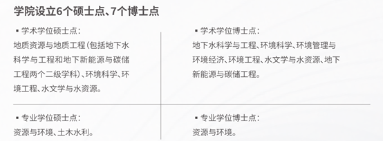 学院形成了本科-硕士-博士-博士后的完整人才培养体系,拥有环境科学与工程、地质资源与地质工程一级学科博士点和博士后流动站。在籍本科生940余人,硕士研究生320余人,博士研究生210余人。