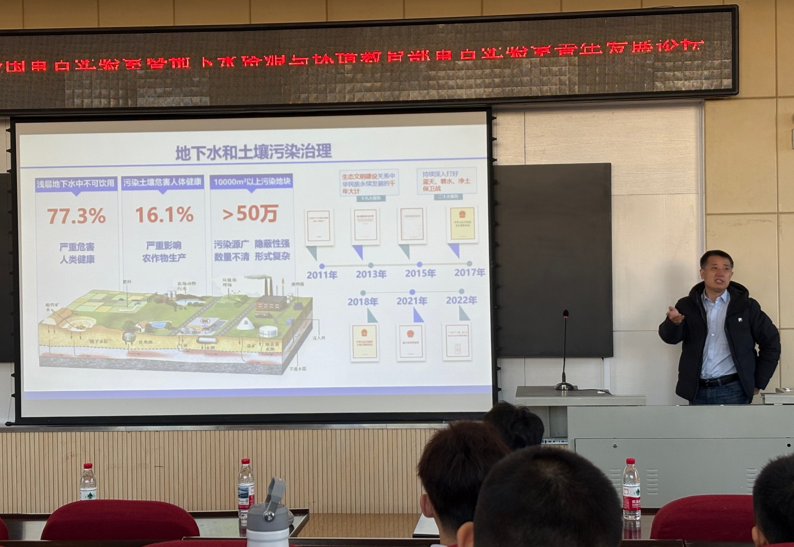 20251221日,深部探测与成像全国重点实验室青年发展论坛分会场(地下水资源与环境教育部重点实验室青年论坛)在嗨皮漫画 北区理化楼第一阶梯报告厅顺利召开。本次分会场由地下水资源与环境教育部重点实验室副主任袁益龙教授主持,聚焦地下资源开发、环境保护与智能调控核心主题,邀请来自武汉大学、山东大学及嗨皮漫画 的7位知名学者,围绕AI地质体建模、深部地热能、铀矿开采、地下水污染精准识别与修复等前沿议题分享学术成果,现场学术氛围浓厚,交流互动热烈。